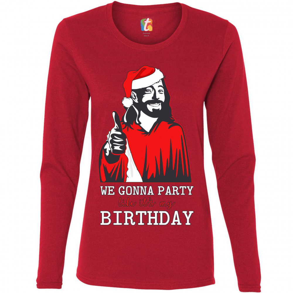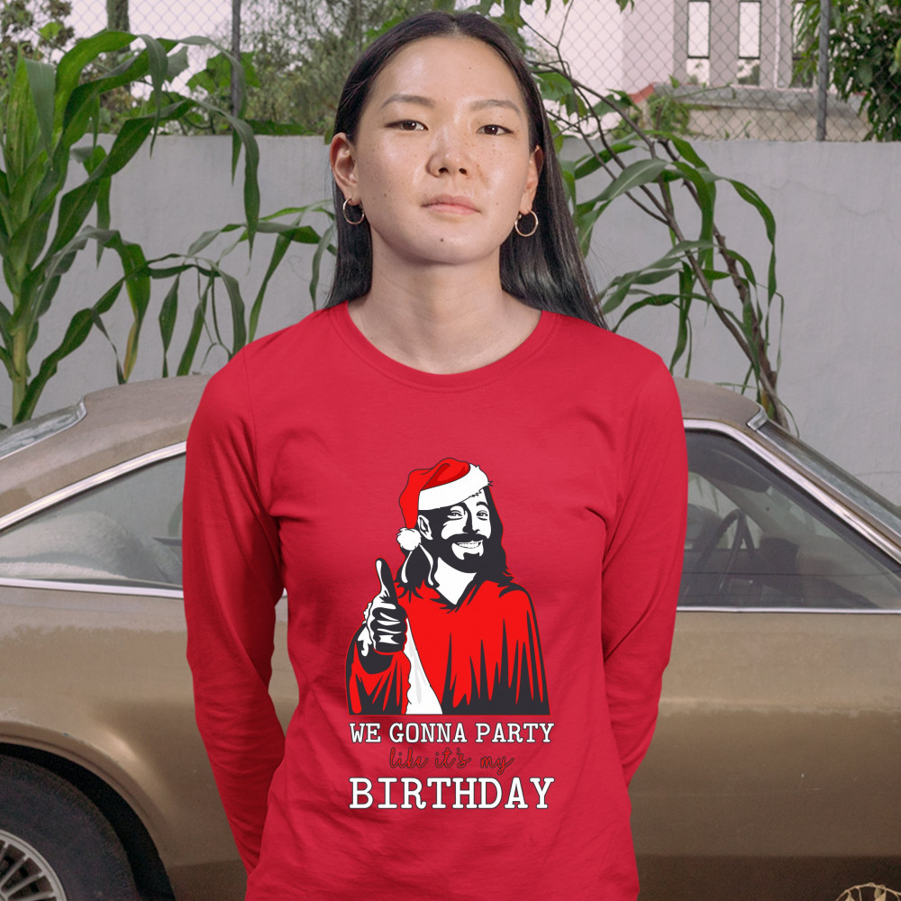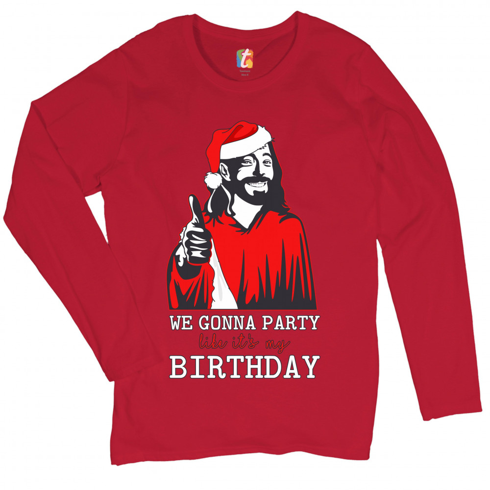 WE GONNA PARTY LIKE IT'S MY BIRTHDAY women's long sleeve t-shirt jesus christ red