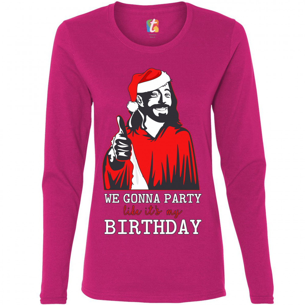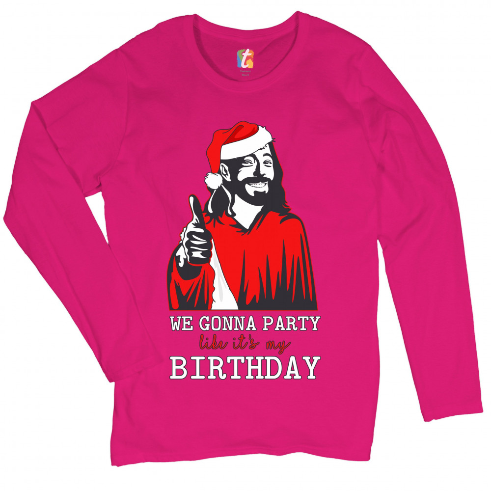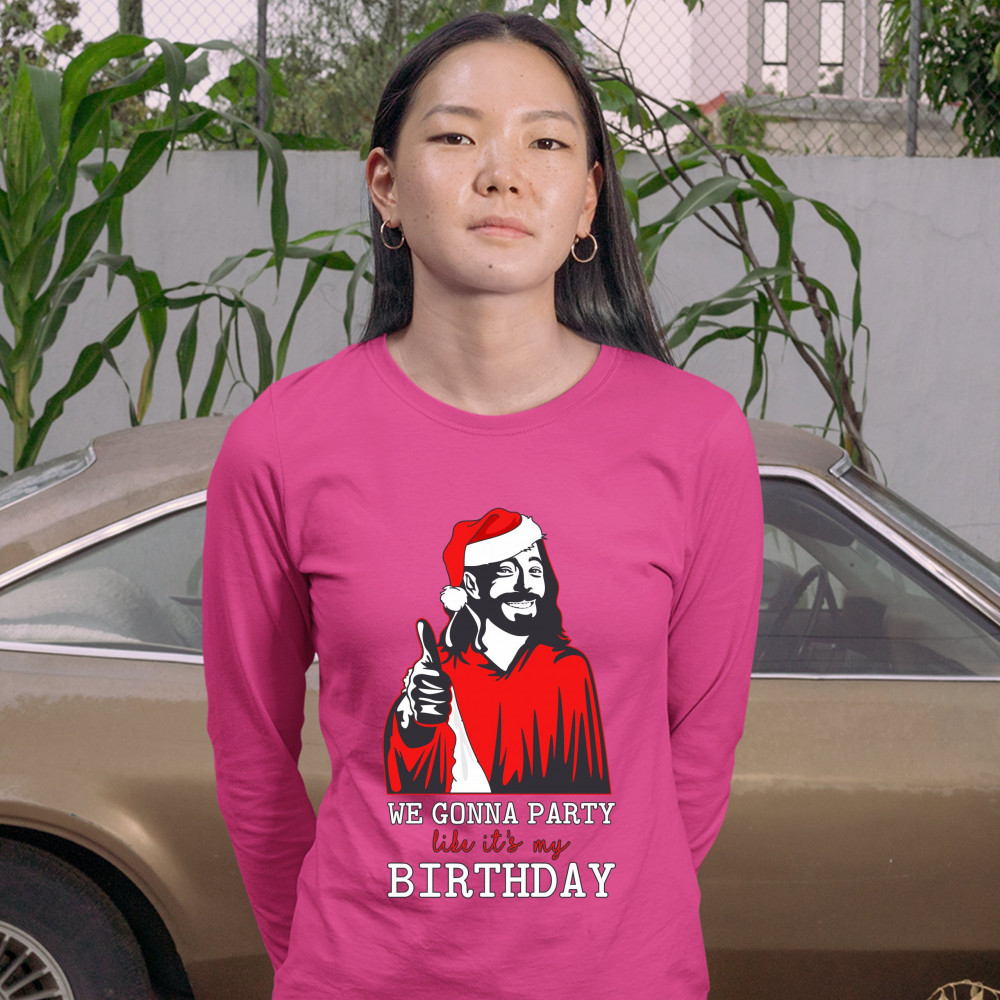 WE GONNA PARTY LIKE IT'S MY BIRTHDAY women's long sleeve t-shirt jesus christ pink