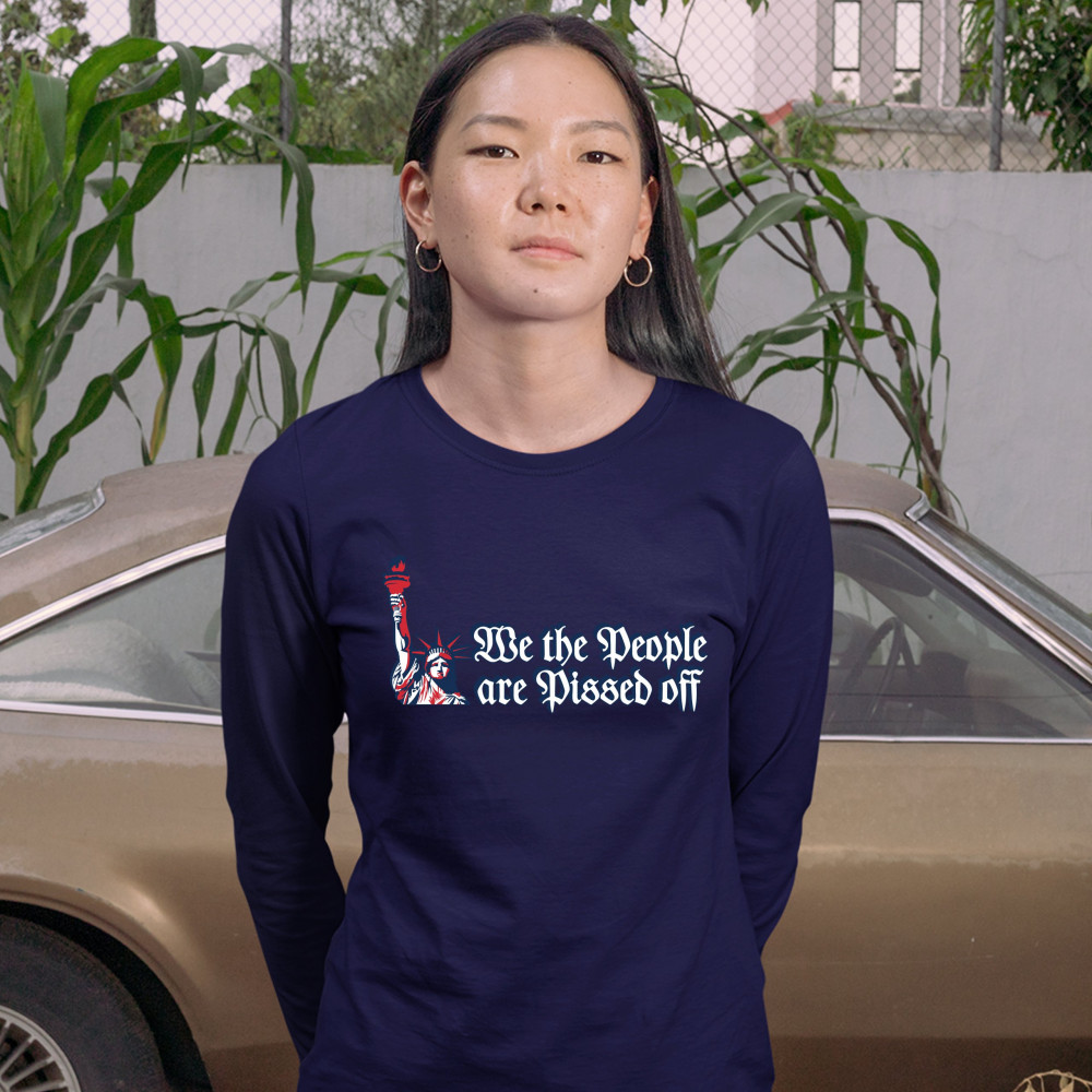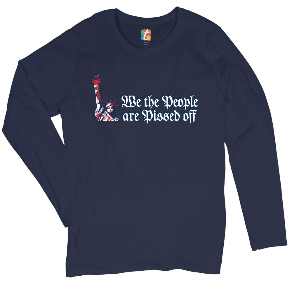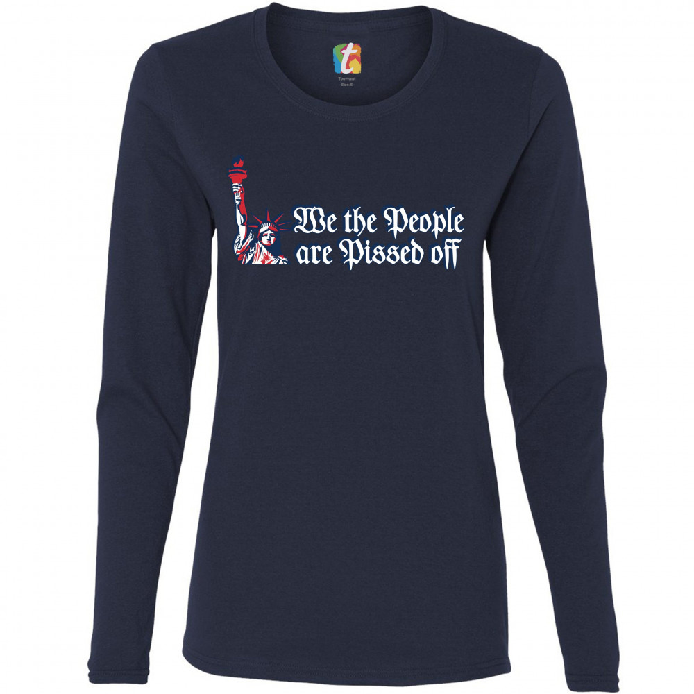 WE THE PEOPLE ARE PISSED OFF women's long sleeve t-shirt statue of liberty navy blue