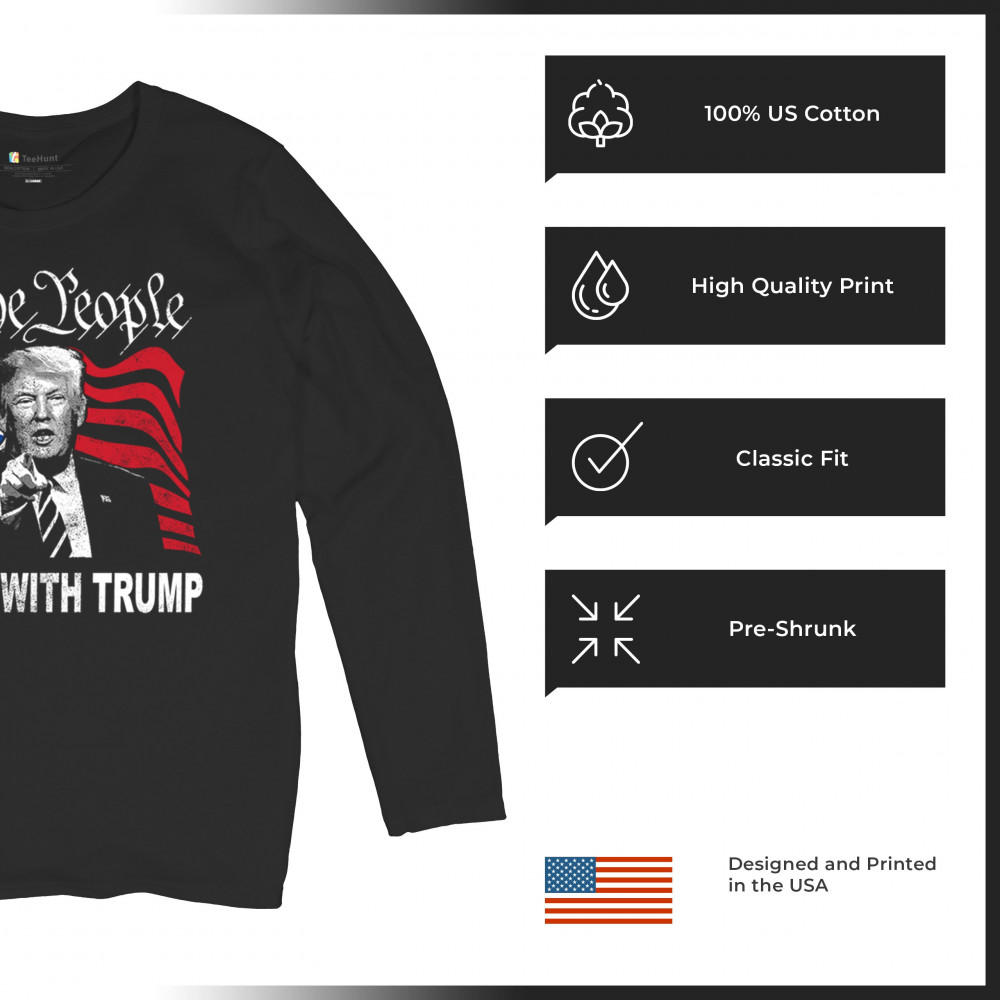 Express your allegiance to President Trump with the "We the People Stand with Trump" design. This compelling design showcases a determined Trump pointing forward, set against the iconic American flag, symbolizing strength and patriotism. It's a perfect choice for rallies and gatherings, proudly representing conservative values and the fight against leftist agendas. Stand up for America's future and make a statement with this design, supporting the principles of freedom and democracy. An essential addition for any Trump supporter dedicated to the conservative cause.