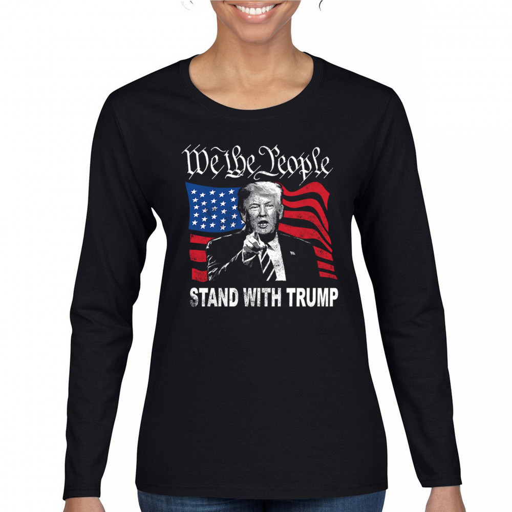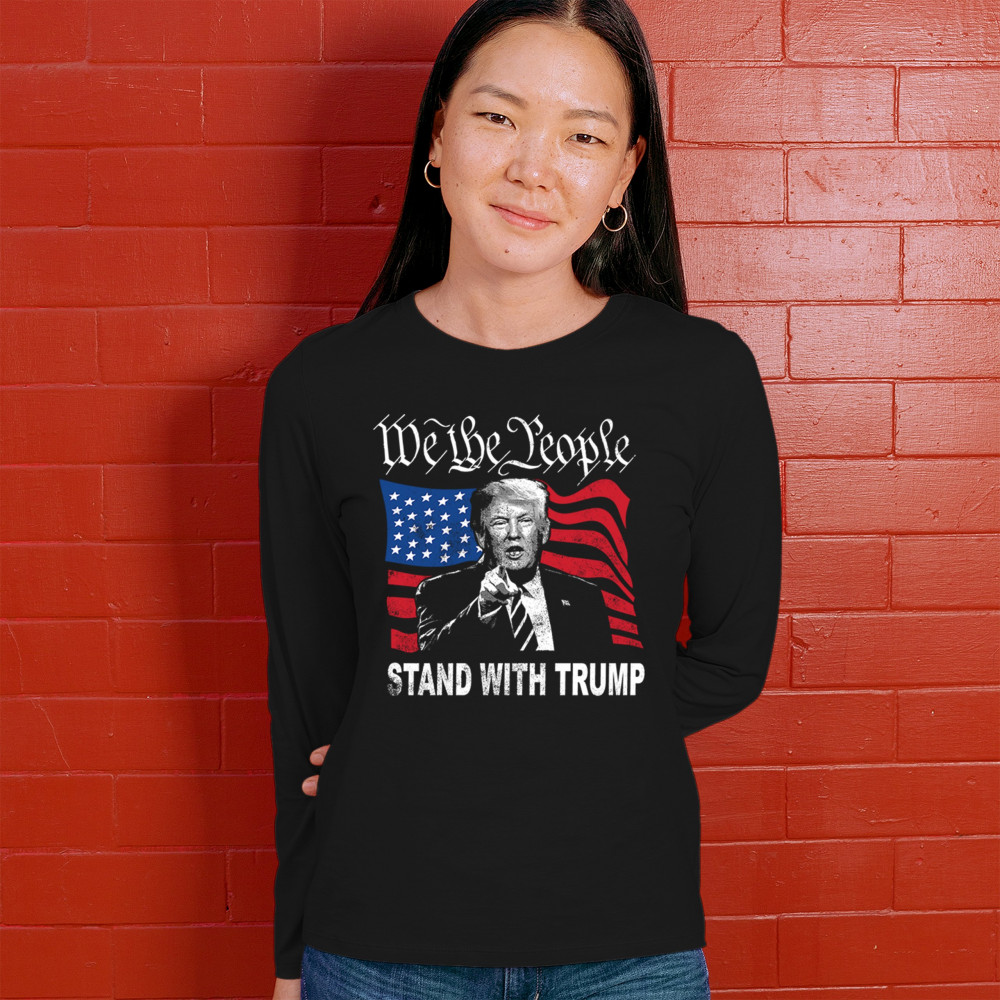 WE THE PEOPLE STAND WITH TRUMP 2024 women's long sleeve t-shirt maga president black