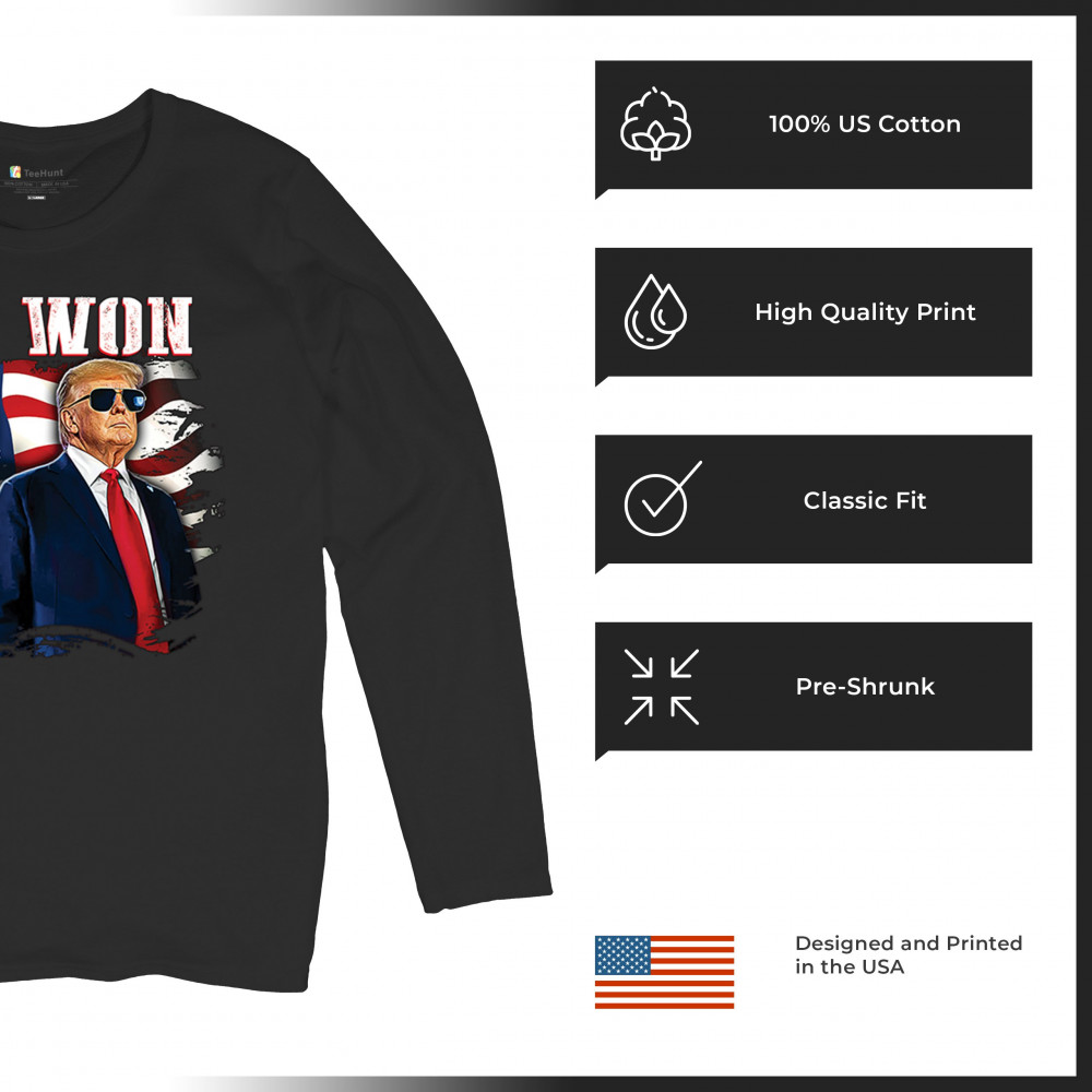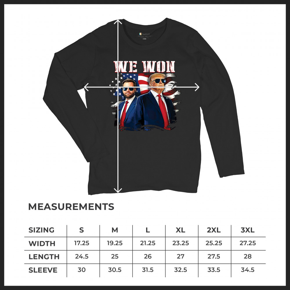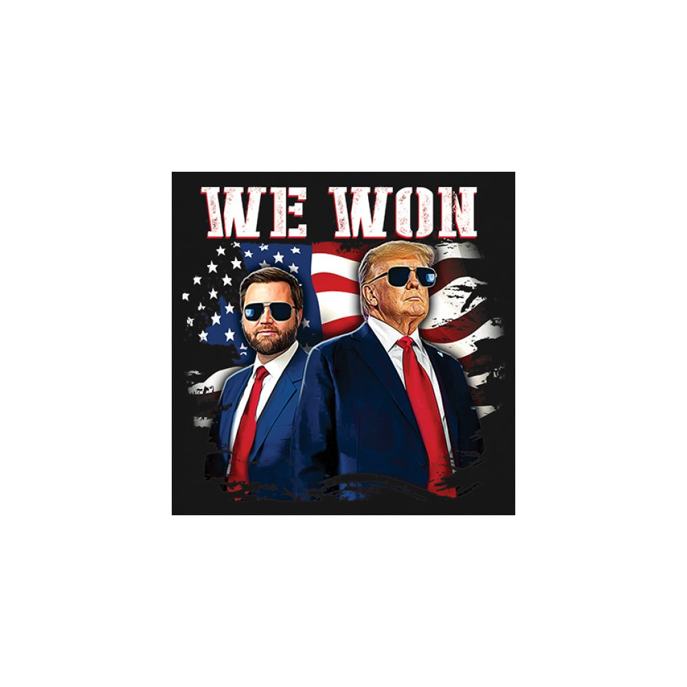 Celebrate Republican victory with this bold "We Won" design featuring Trump and patriotic flair—perfect for rallies, events, and patriotic pride.