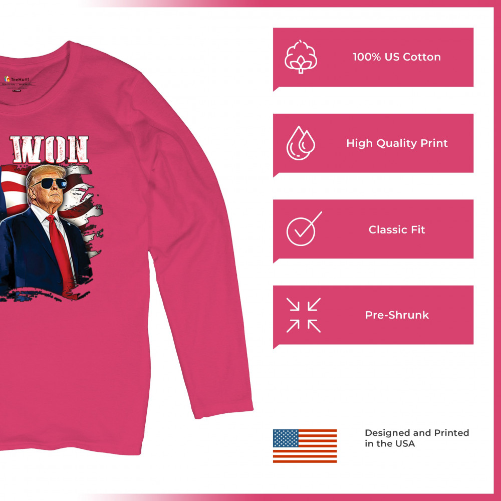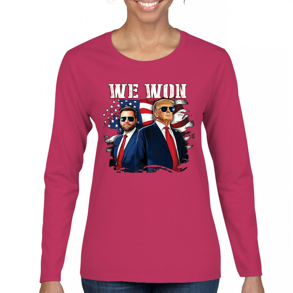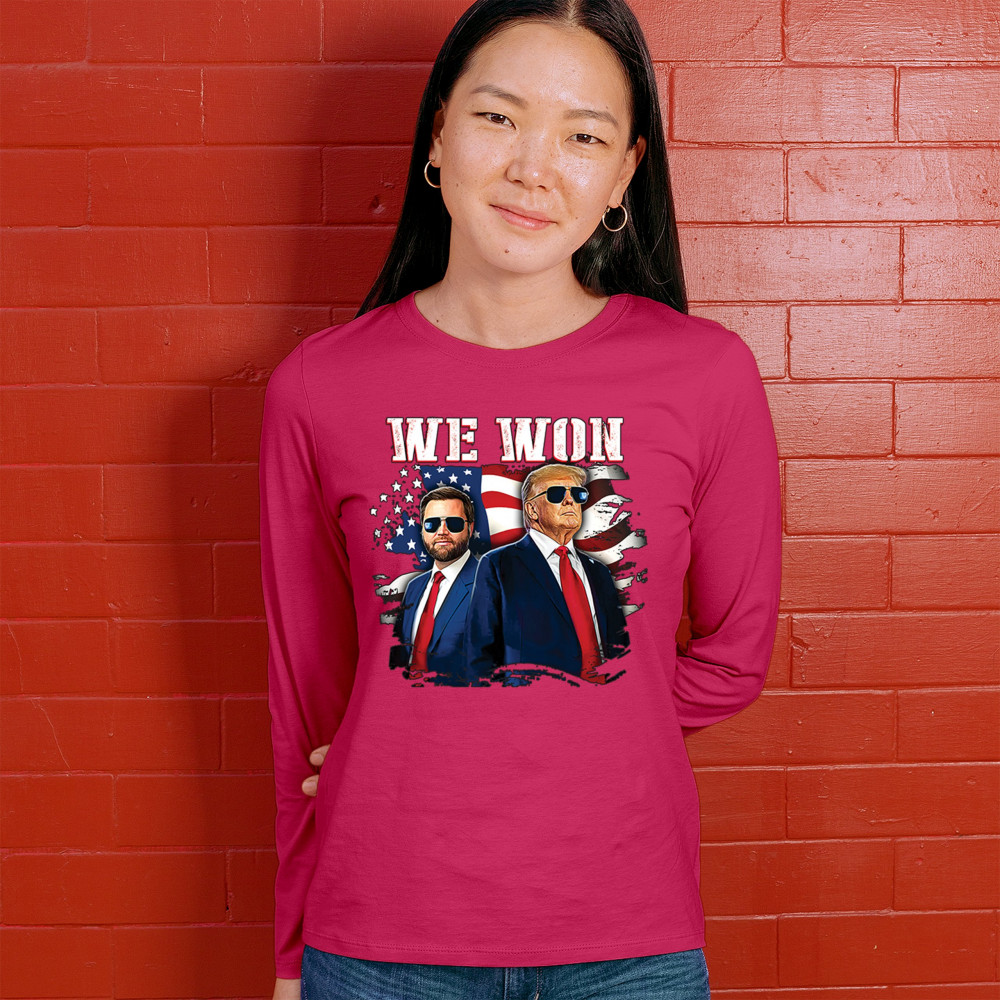 Celebrate Republican victory with this bold "We Won" design featuring Trump and patriotic flair—perfect for rallies, events, and patriotic pride.