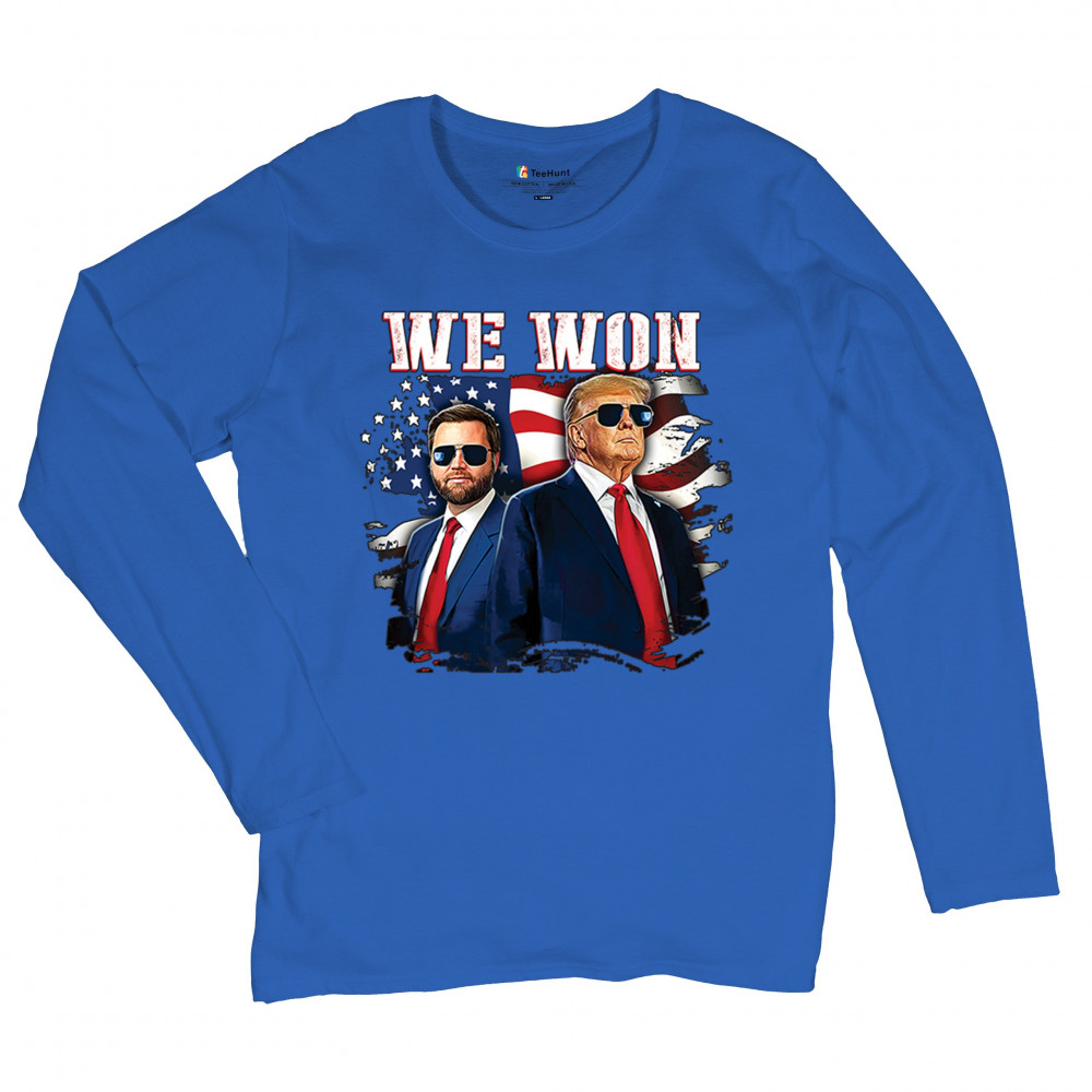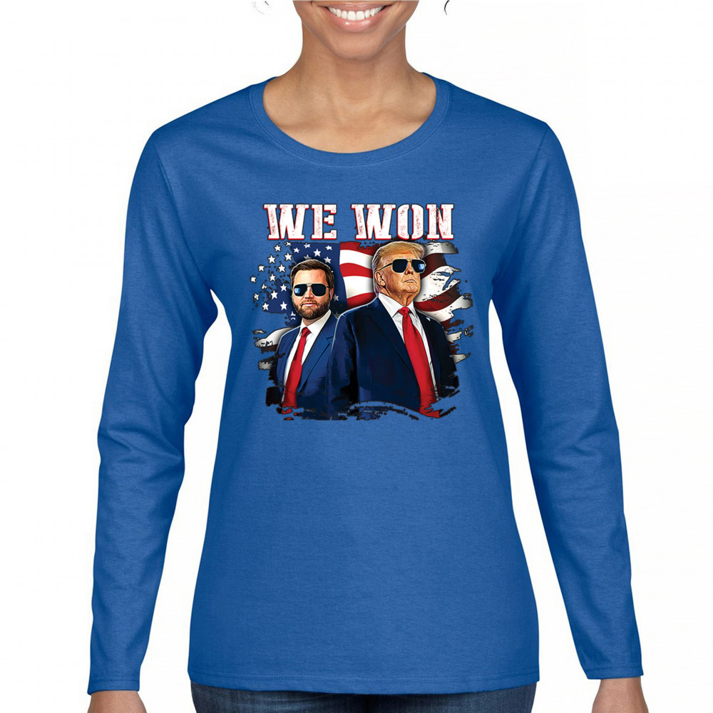Celebrate Republican victory with this bold "We Won" design featuring Trump and patriotic flair—perfect for rallies, events, and patriotic pride.