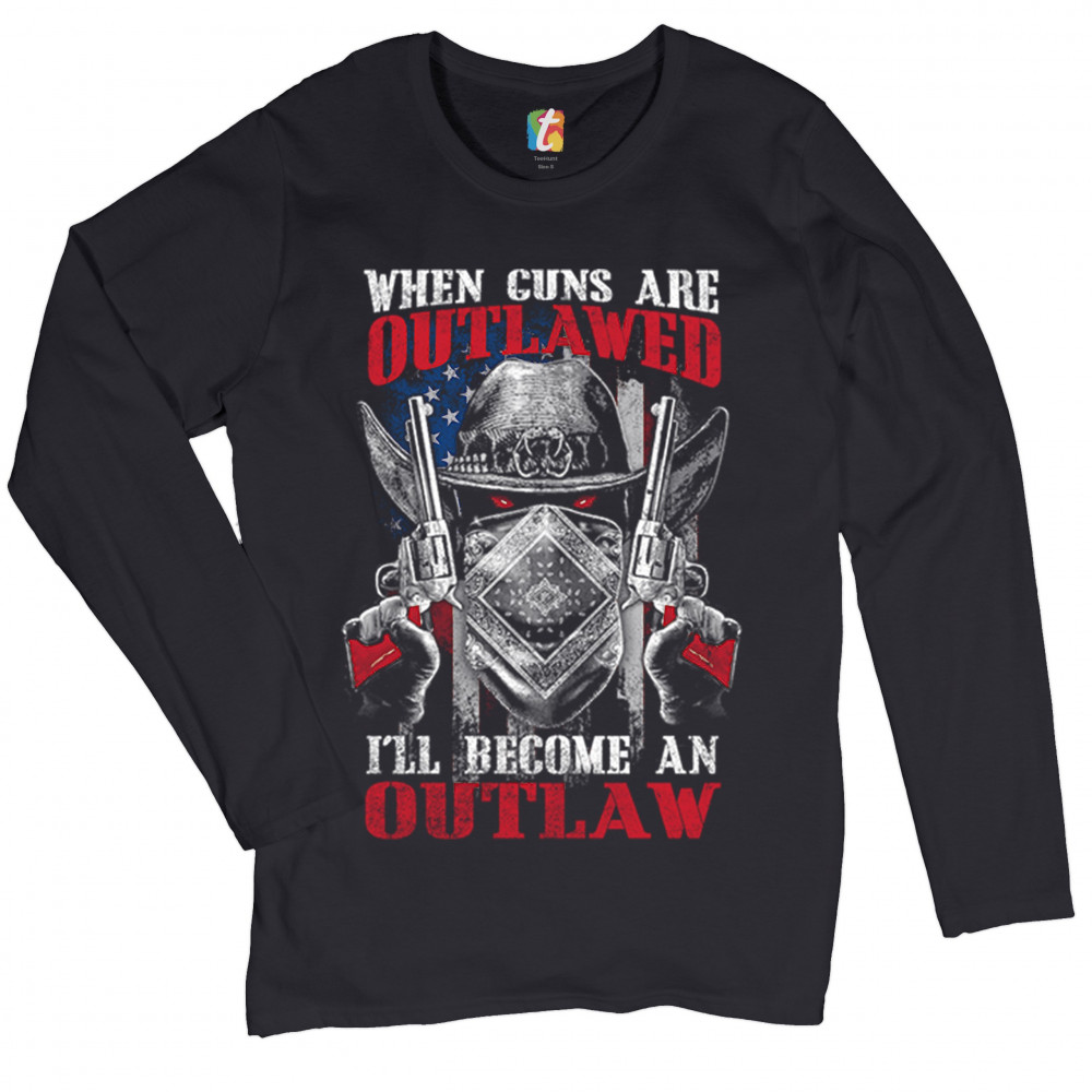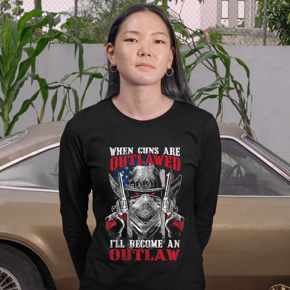 WHEN GUNS ARE OUTLAWED I'LL BECOME AN OUTLAW women's long sleeve t-shirt 2a gun black