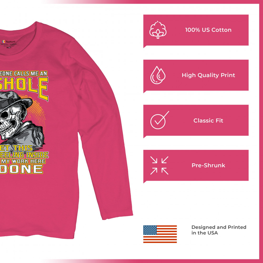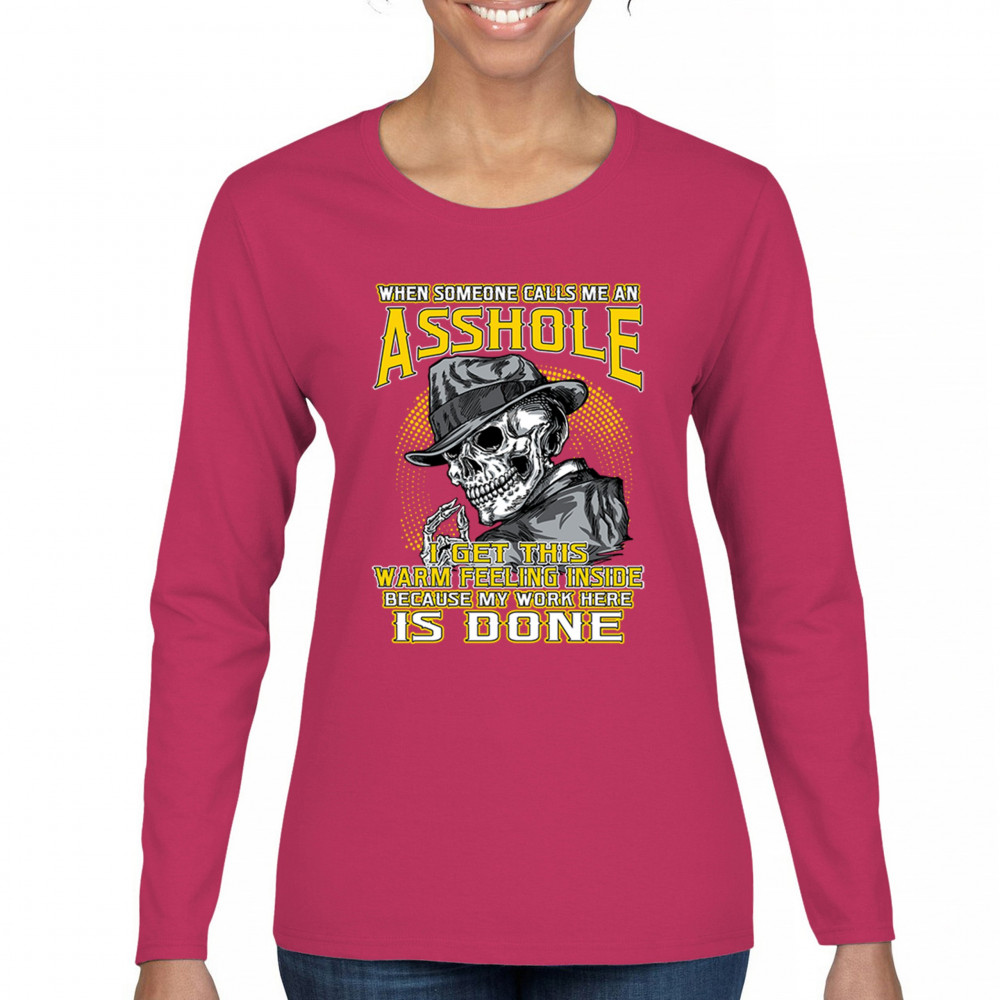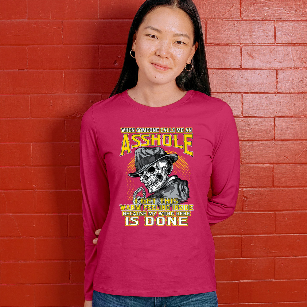 This badass design features a smirking skull in a fedora with a cigarette, backed by the line: “When someone calls me an asshole... my work here is done.†Built for dark humor fans, skull art lovers, and those who live life with sharp wit and zero regrets. Ideal for biker rallies, sarcasm nights, or anyone owning their attitude with pride.