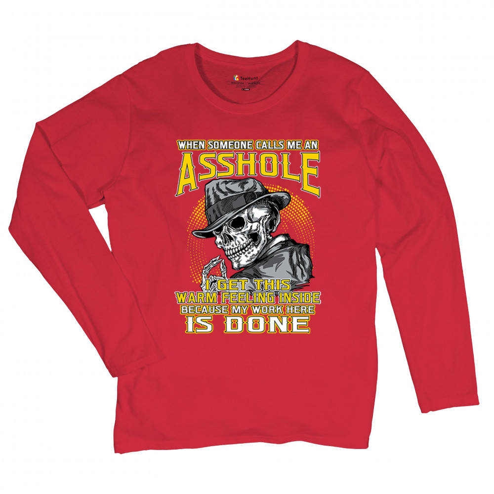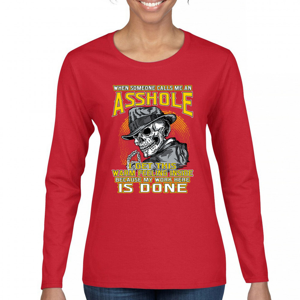 This badass design features a smirking skull in a fedora with a cigarette, backed by the line: “When someone calls me an asshole... my work here is done.†Built for dark humor fans, skull art lovers, and those who live life with sharp wit and zero regrets. Ideal for biker rallies, sarcasm nights, or anyone owning their attitude with pride.