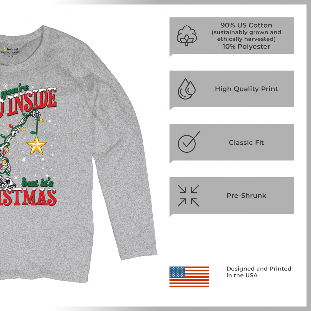 Celebrate humor and holiday spirit with the "When You're Dead Inside But It's Christmas" skeleton design. Perfect for parties and unique gifts.