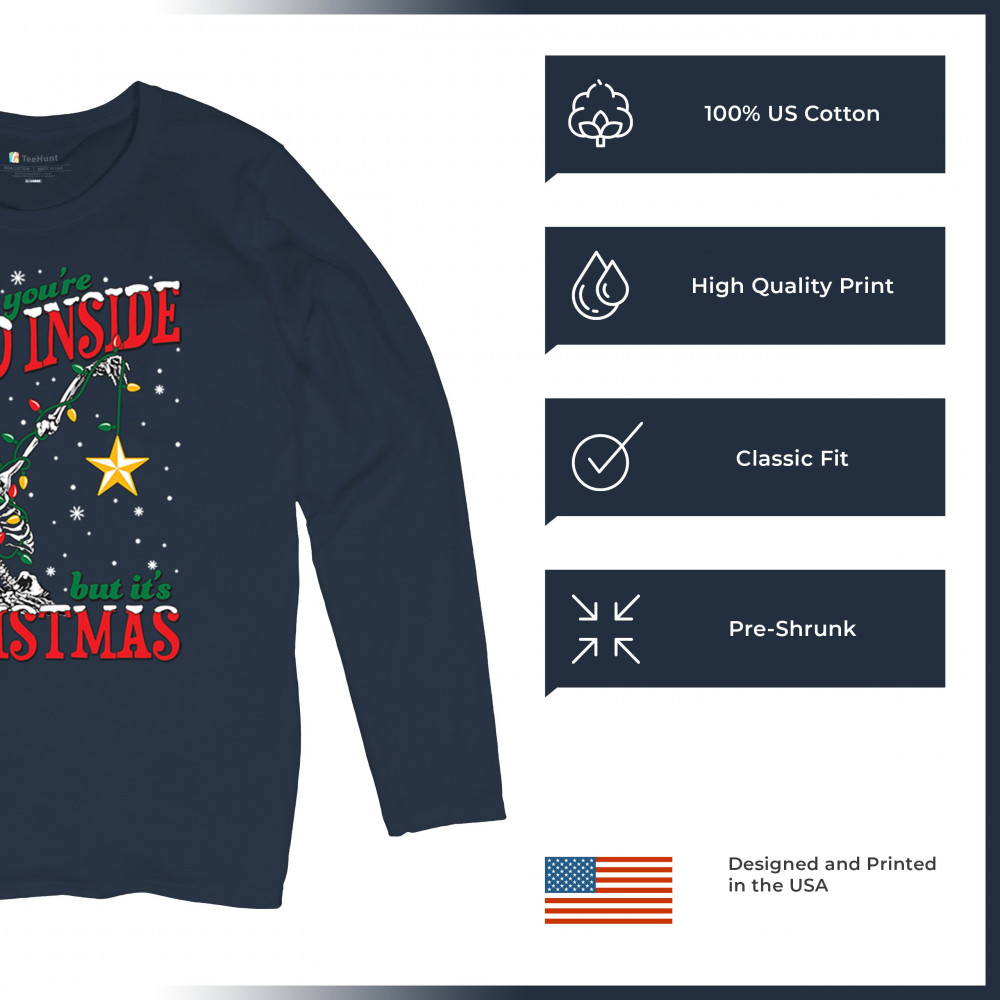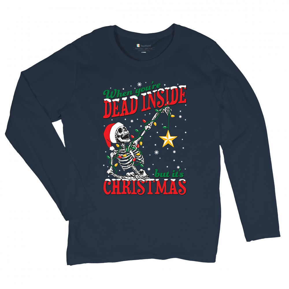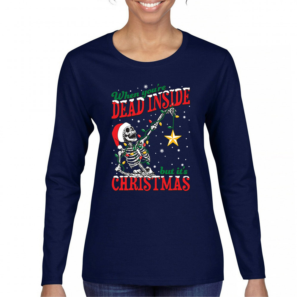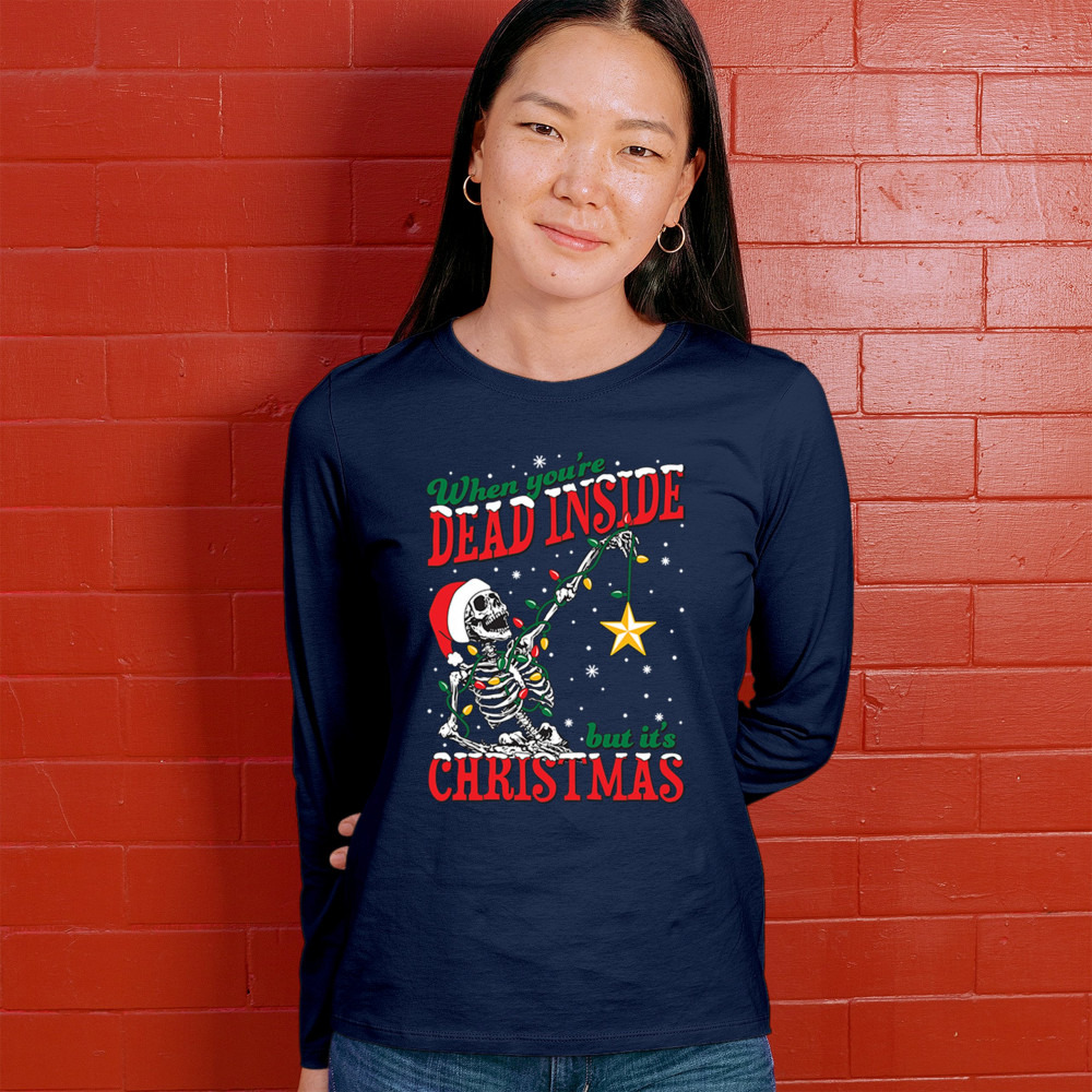 Celebrate humor and holiday spirit with the "When You're Dead Inside But It's Christmas" skeleton design. Perfect for parties and unique gifts.