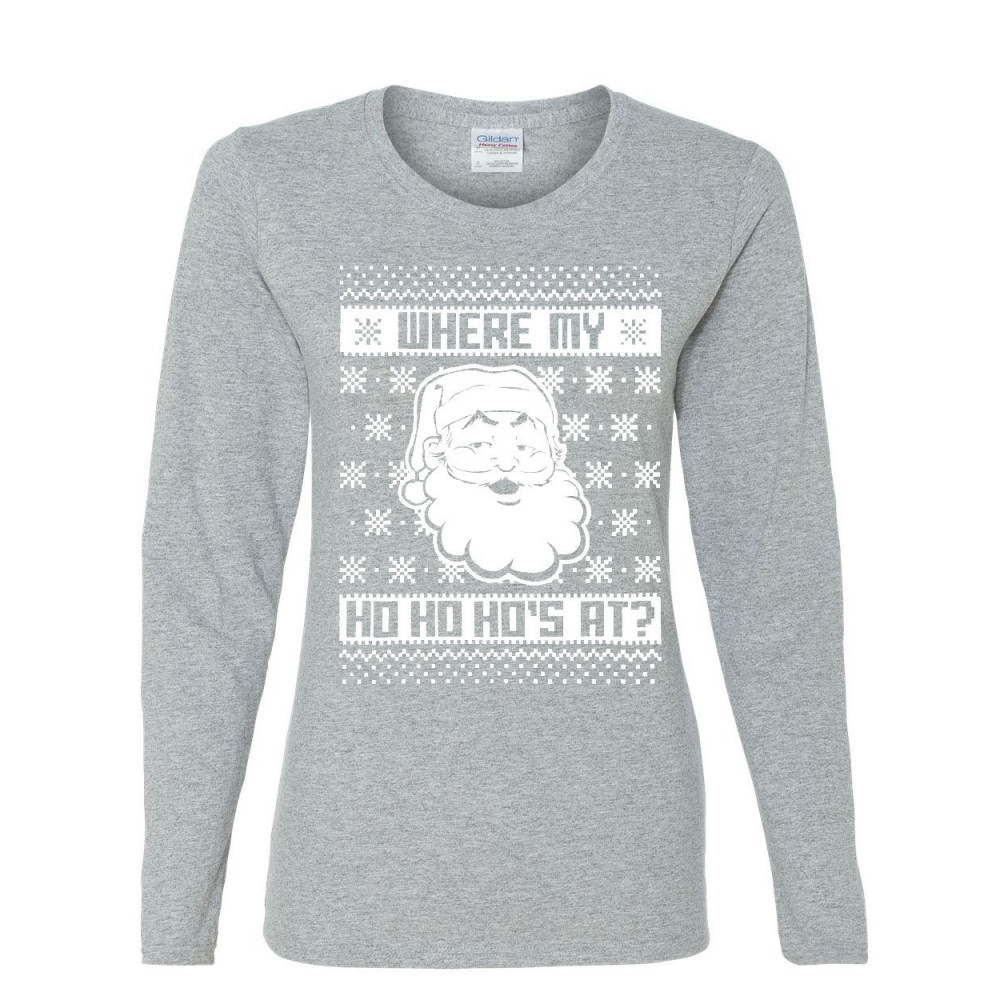 WHERE MY HO HO HO'S AT lady's tee ugly sweatshirt santa xmas christmas gray