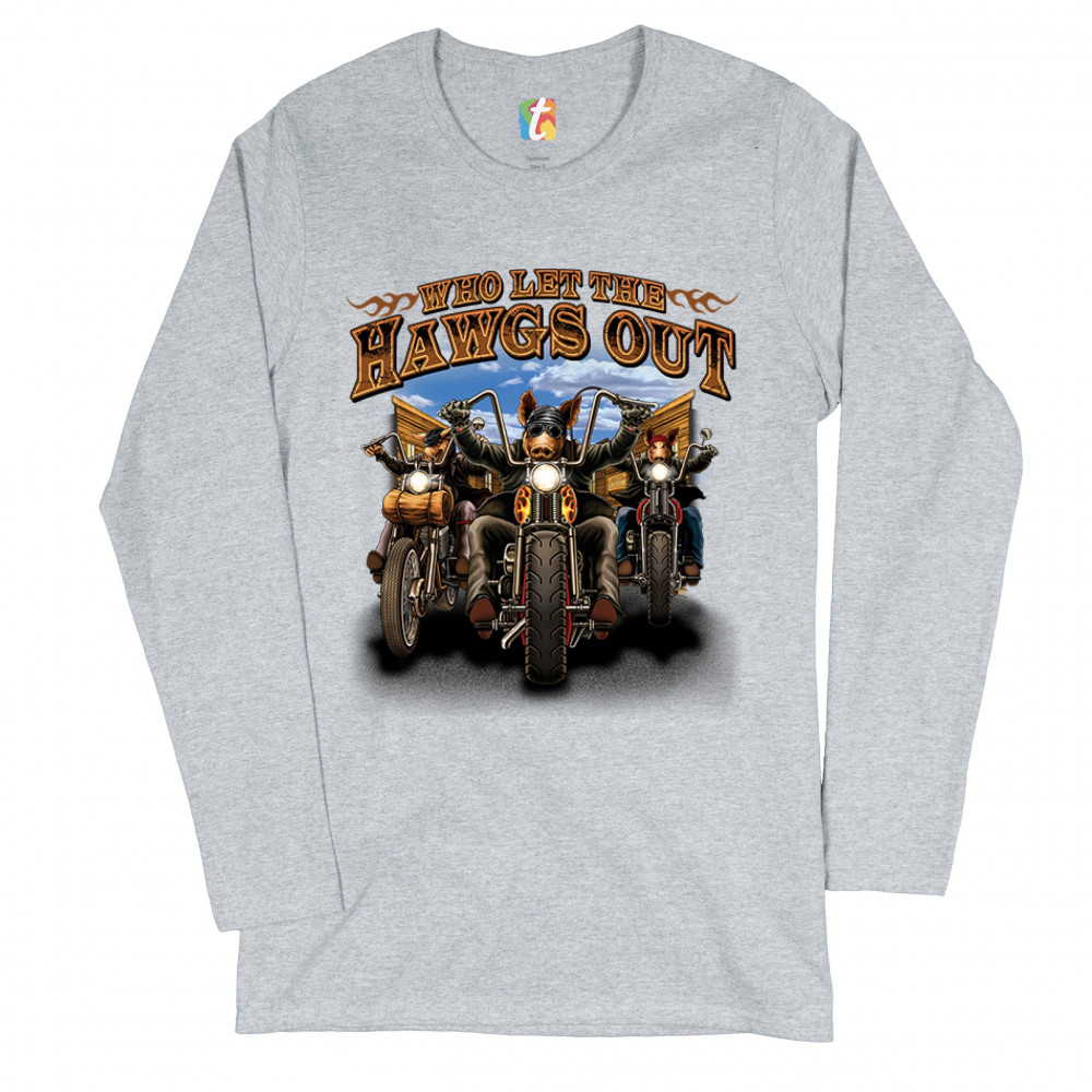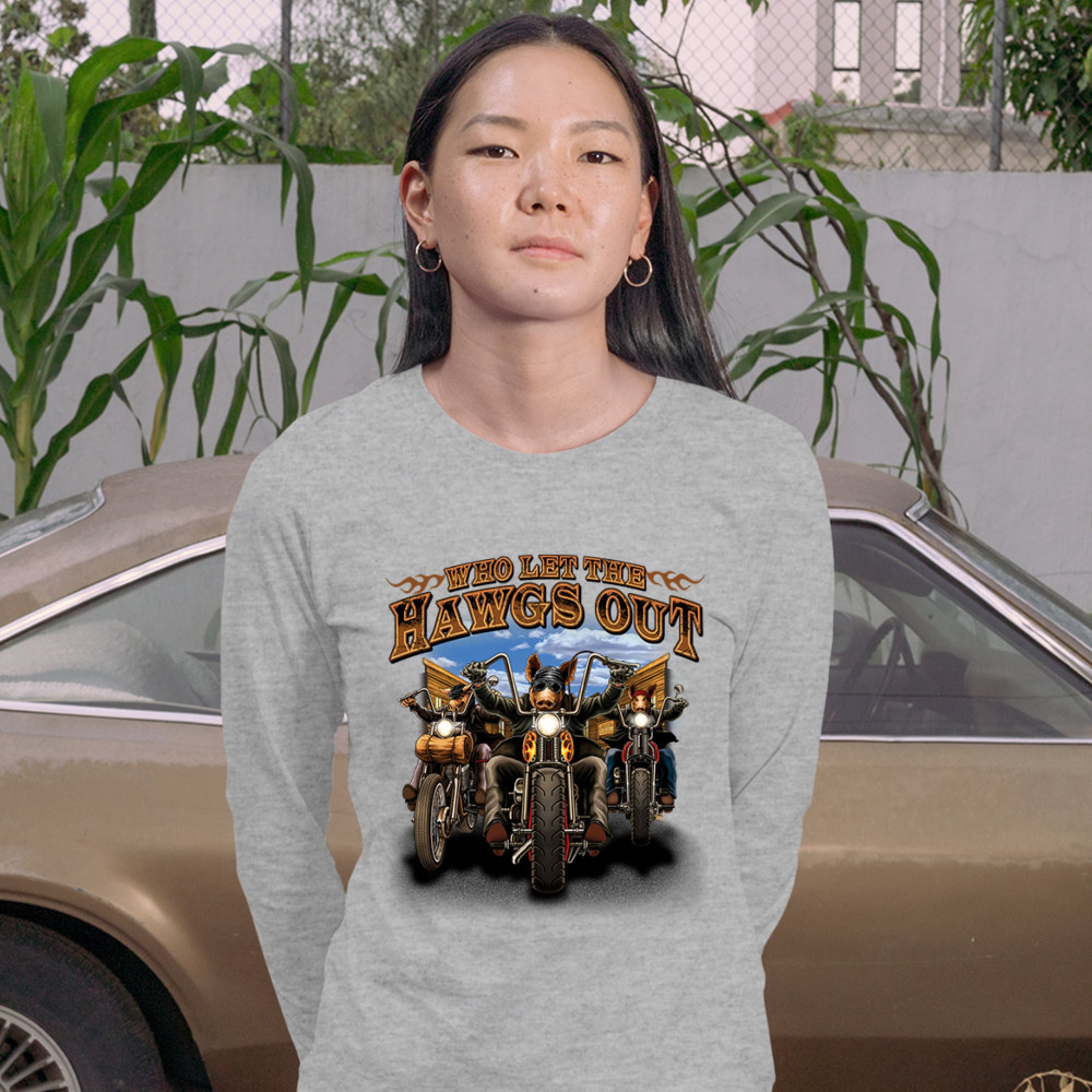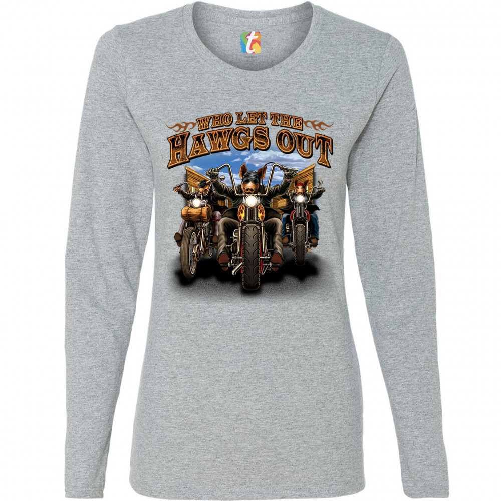 WHO LET THE HAWGS OUT women's long sleeve t-shirt biker motorcycle gang mc gray