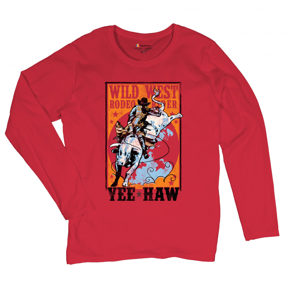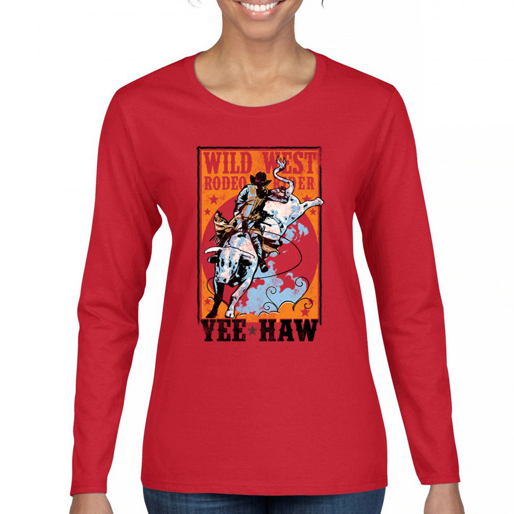 Bold cowboy bull riding design with orange backdrop, perfect for rodeo fans, western events, and country festivals.