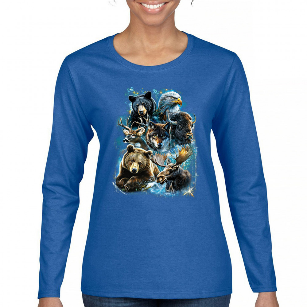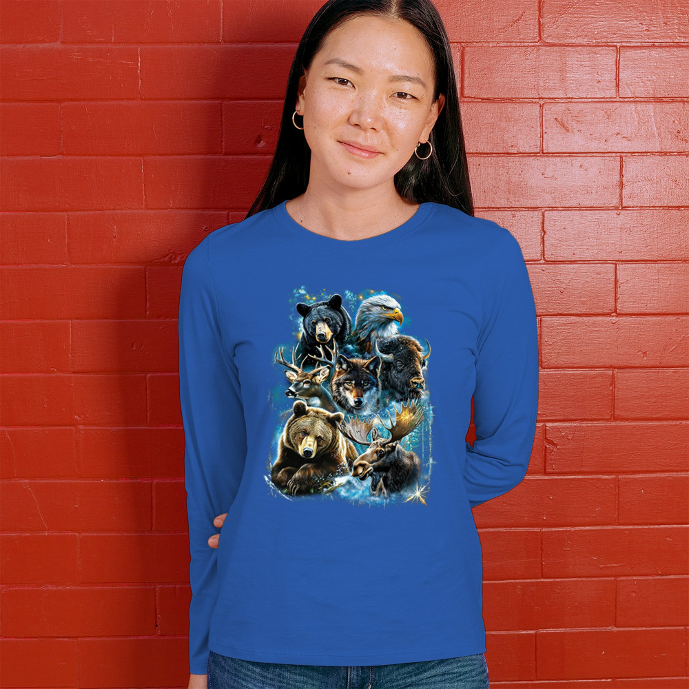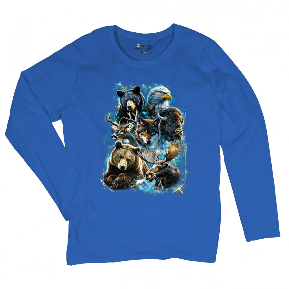 Wilderness design with moose, bear, eagle, bison, and wolf. A bold tribute to forest animals, nature strength, and rugged outdoor spirit.