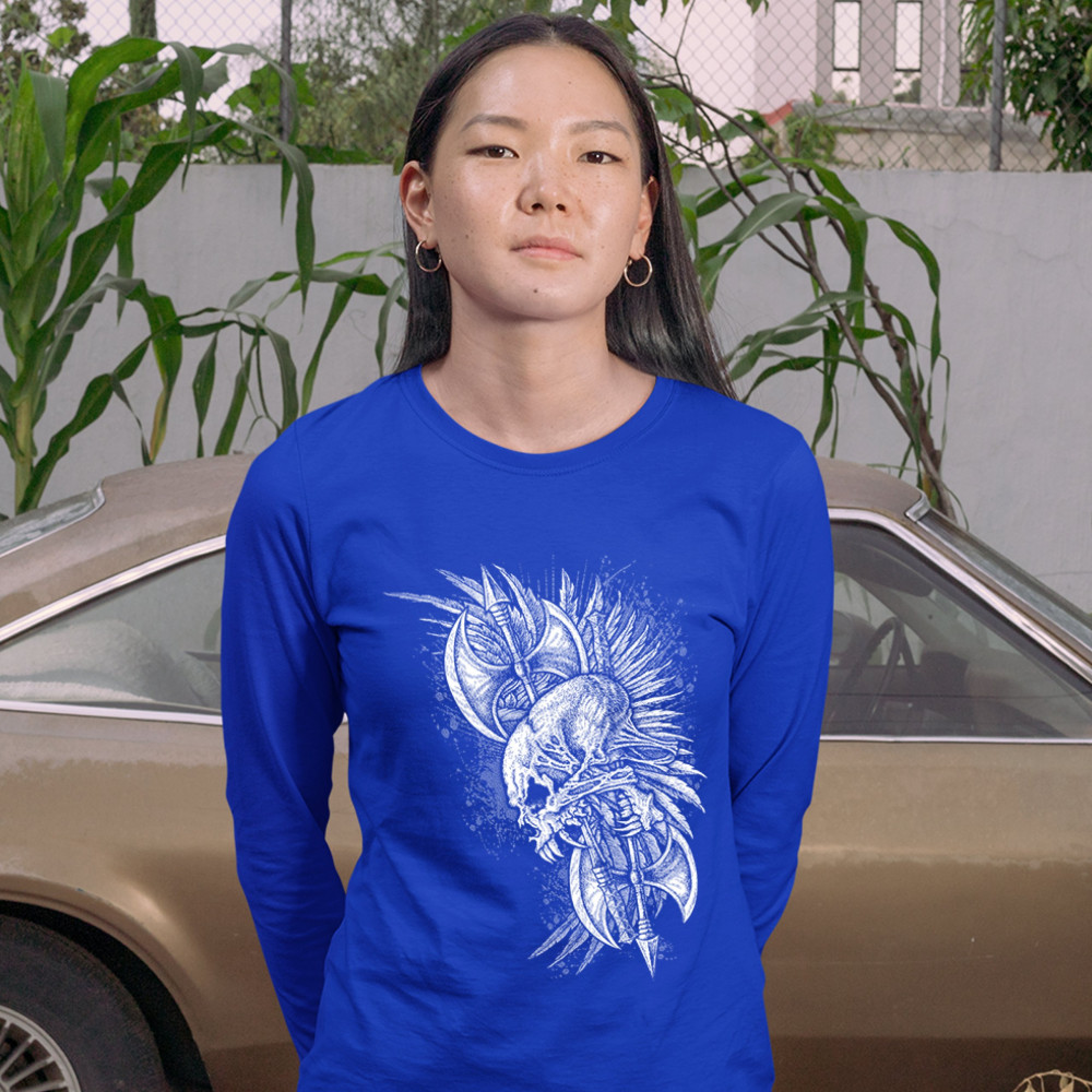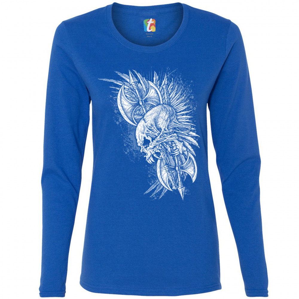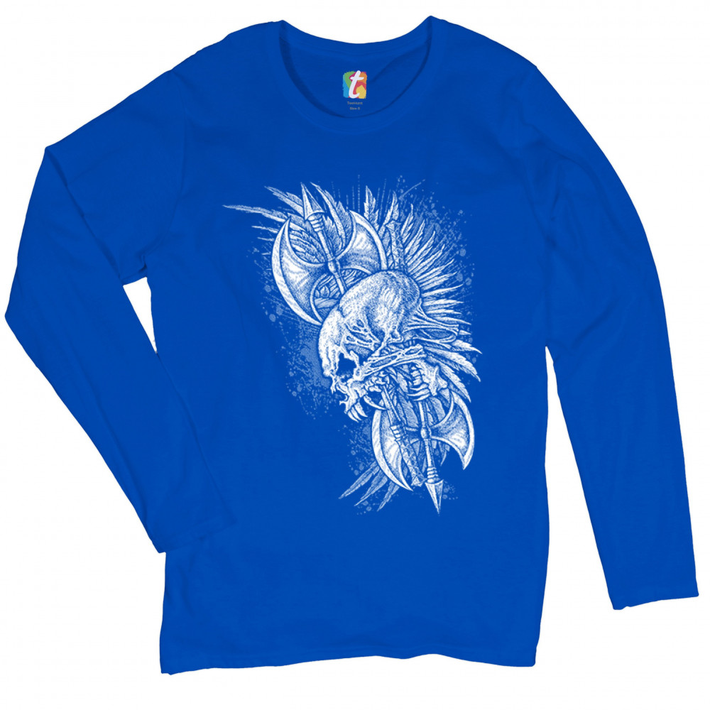 WINGED SKULL women's long sleeve t-shirt viking warrior skeleton labrys axe royal blue