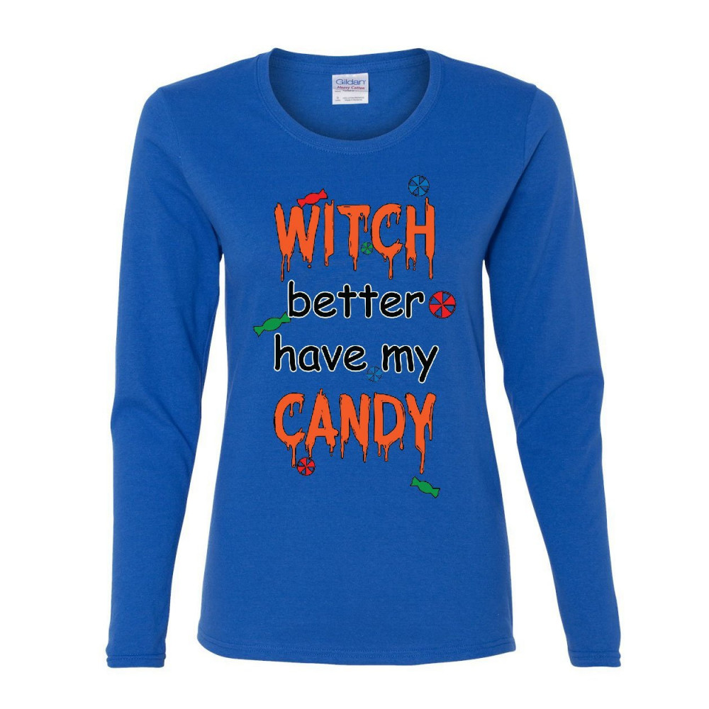 WITCH BETTER HAVE MY CANDY women's long sleeve tee halloween trick or treating royal blue