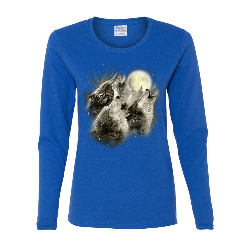 WOLF HOWL women's long sleeve tee wild wolf pack predator animals nature moon royal blue