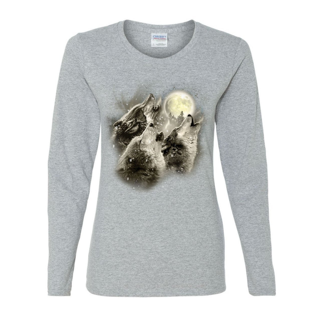 WOLF HOWL women's long sleeve tee wild wolf pack predator animals nature moon gray
