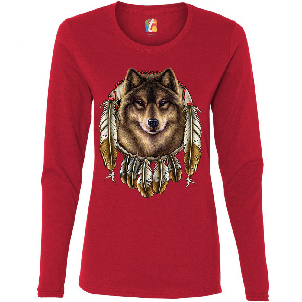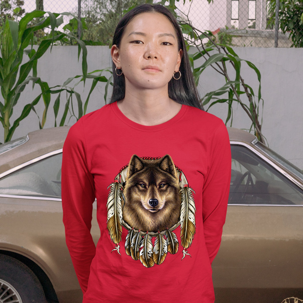 WOLF SPIRIT women's long sleeve t-shirt native american dreamcatcher indigenous red