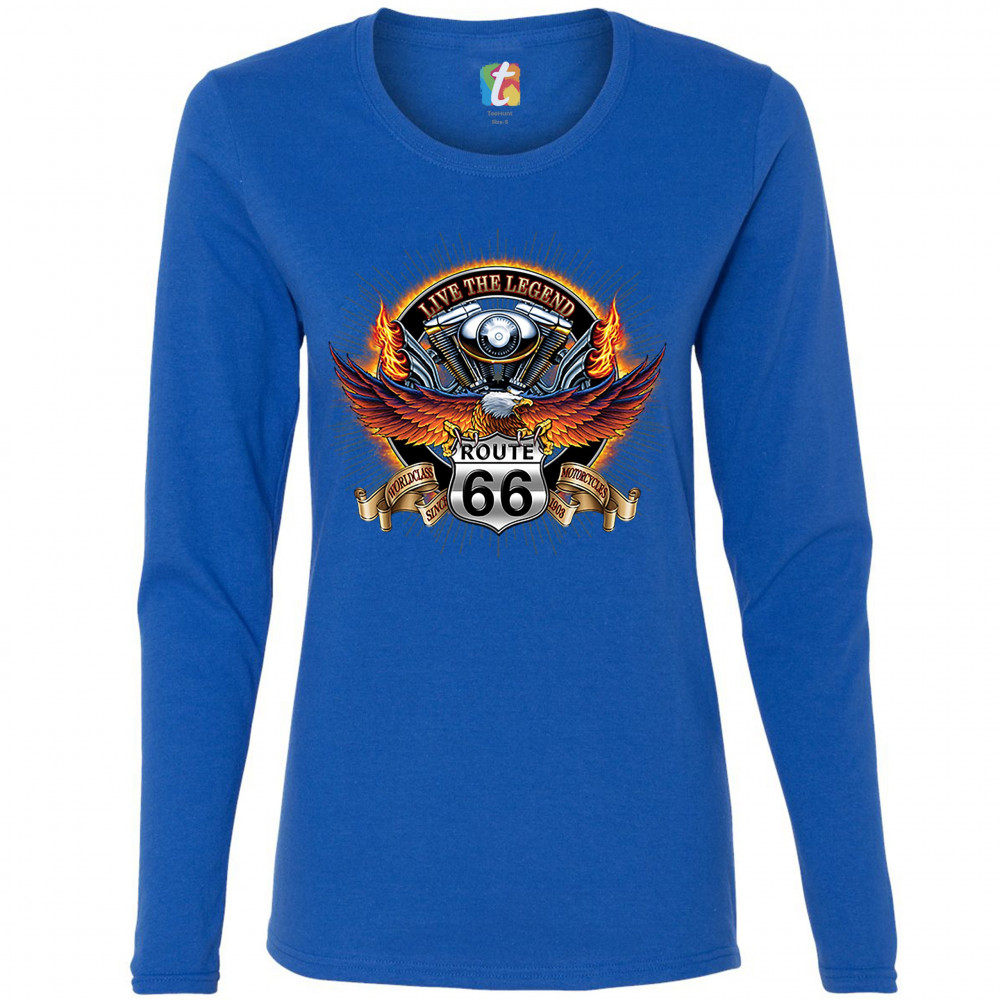 WORDCLASS MOTORCYCLES women's long sleeve t-shirt live the legend route 66 royal blue