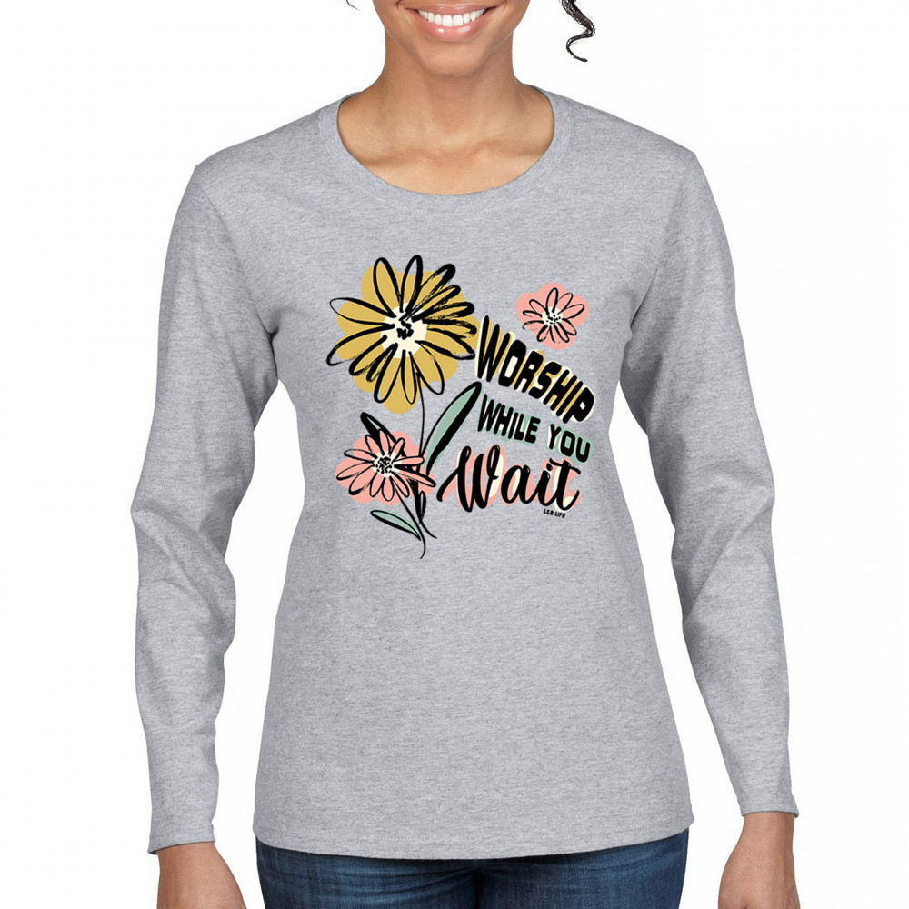 Find solace in our "Worship While You Wait" design, a harmonious blend of florals and faith for life’s quiet moments.