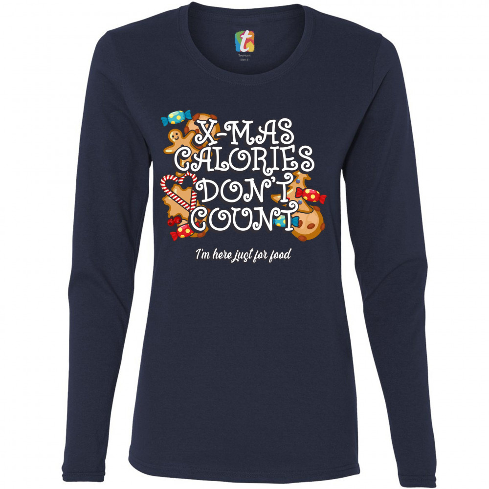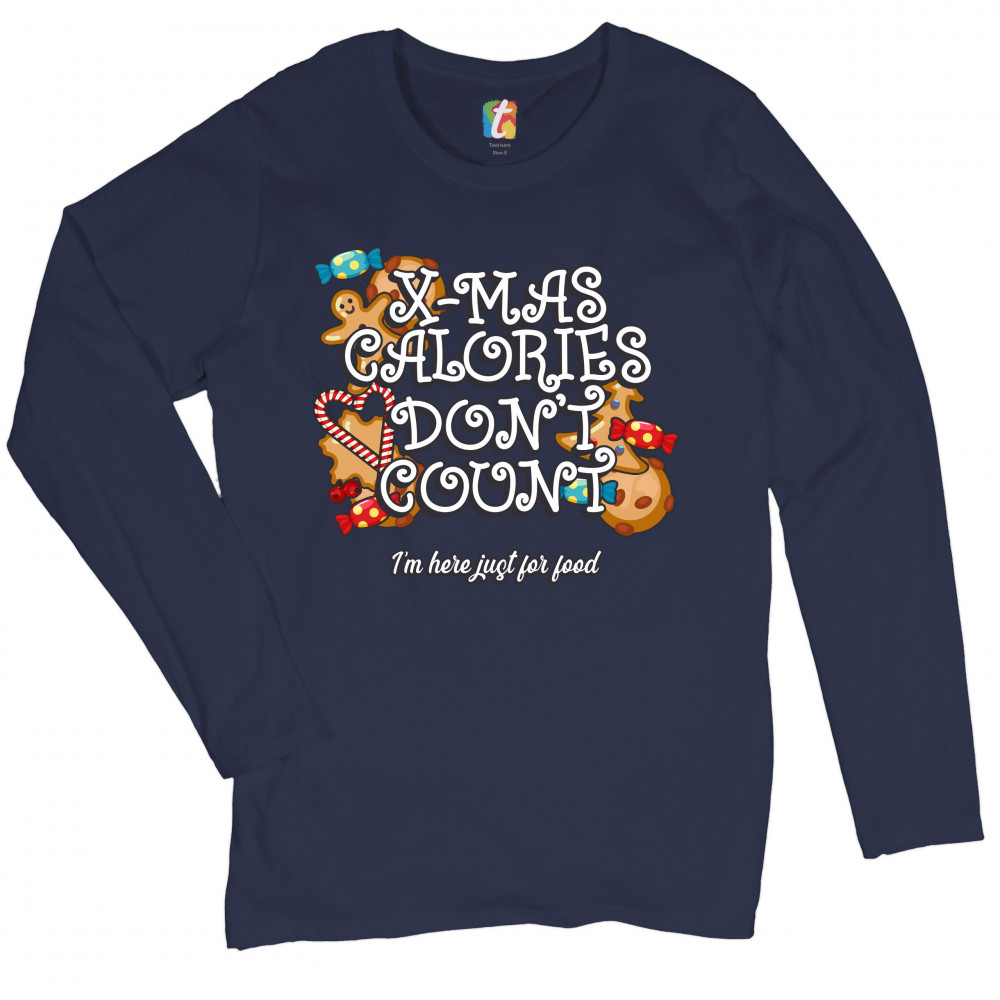 X-MAS CALORIES DON'T COUNT women's long sleeve t-shirt merry christmas funny navy blue