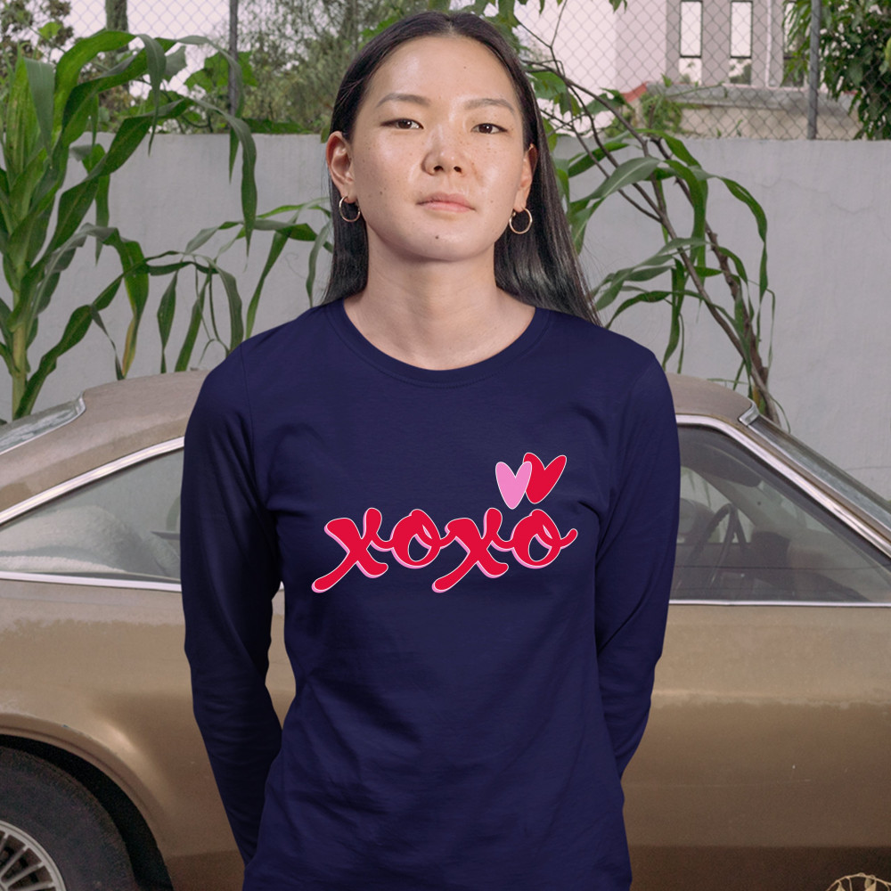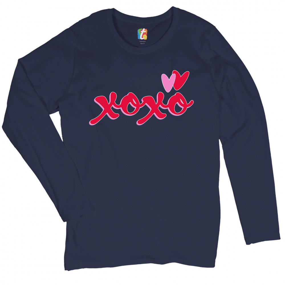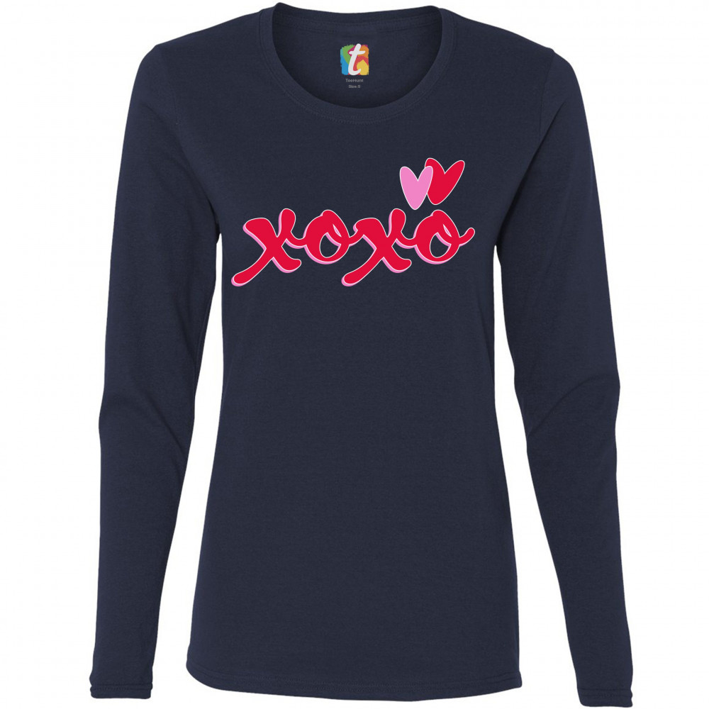 XOXO women's long sleeve t-shirt romance valentine's day hearts passion love navy blue