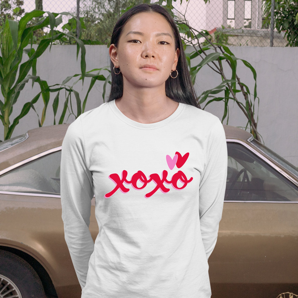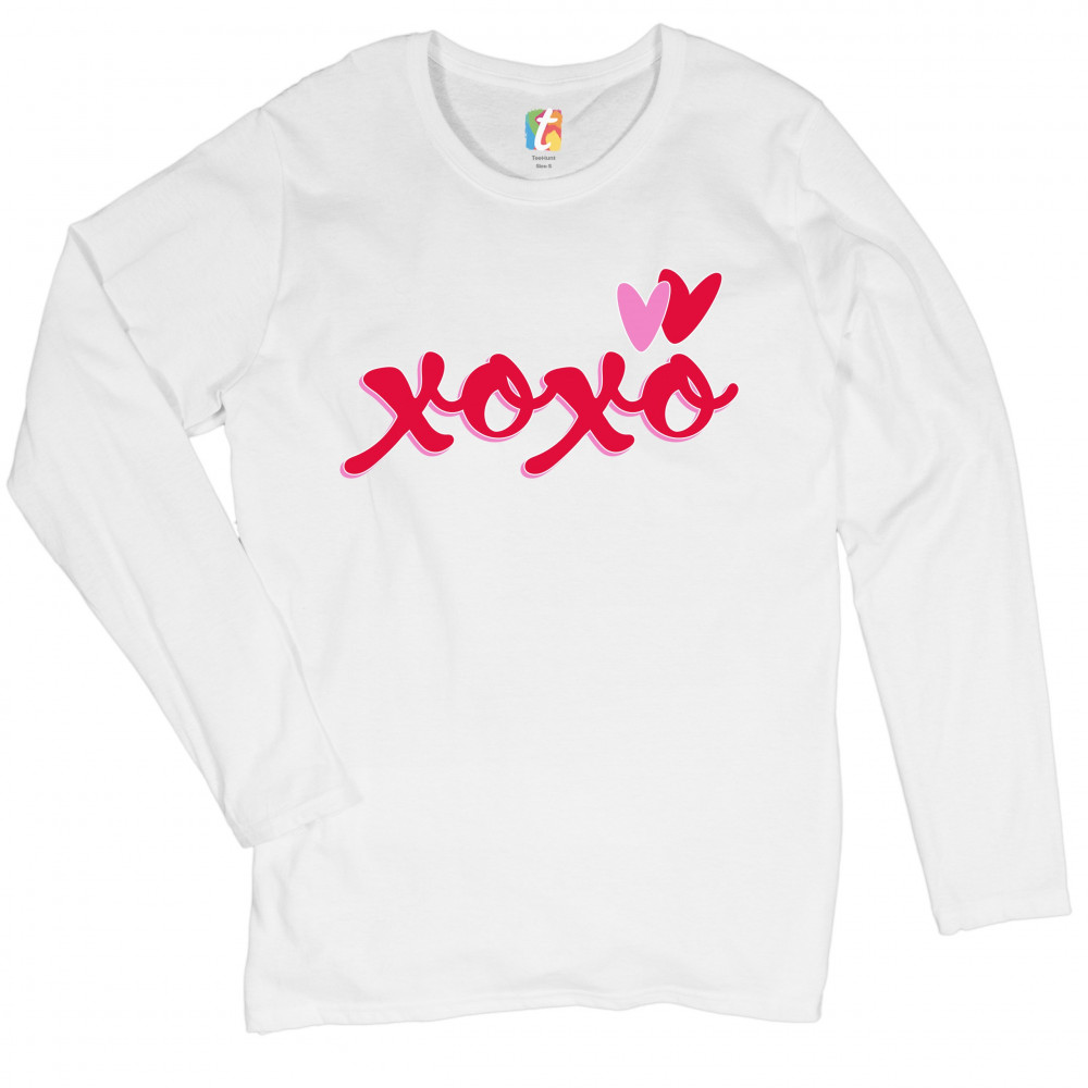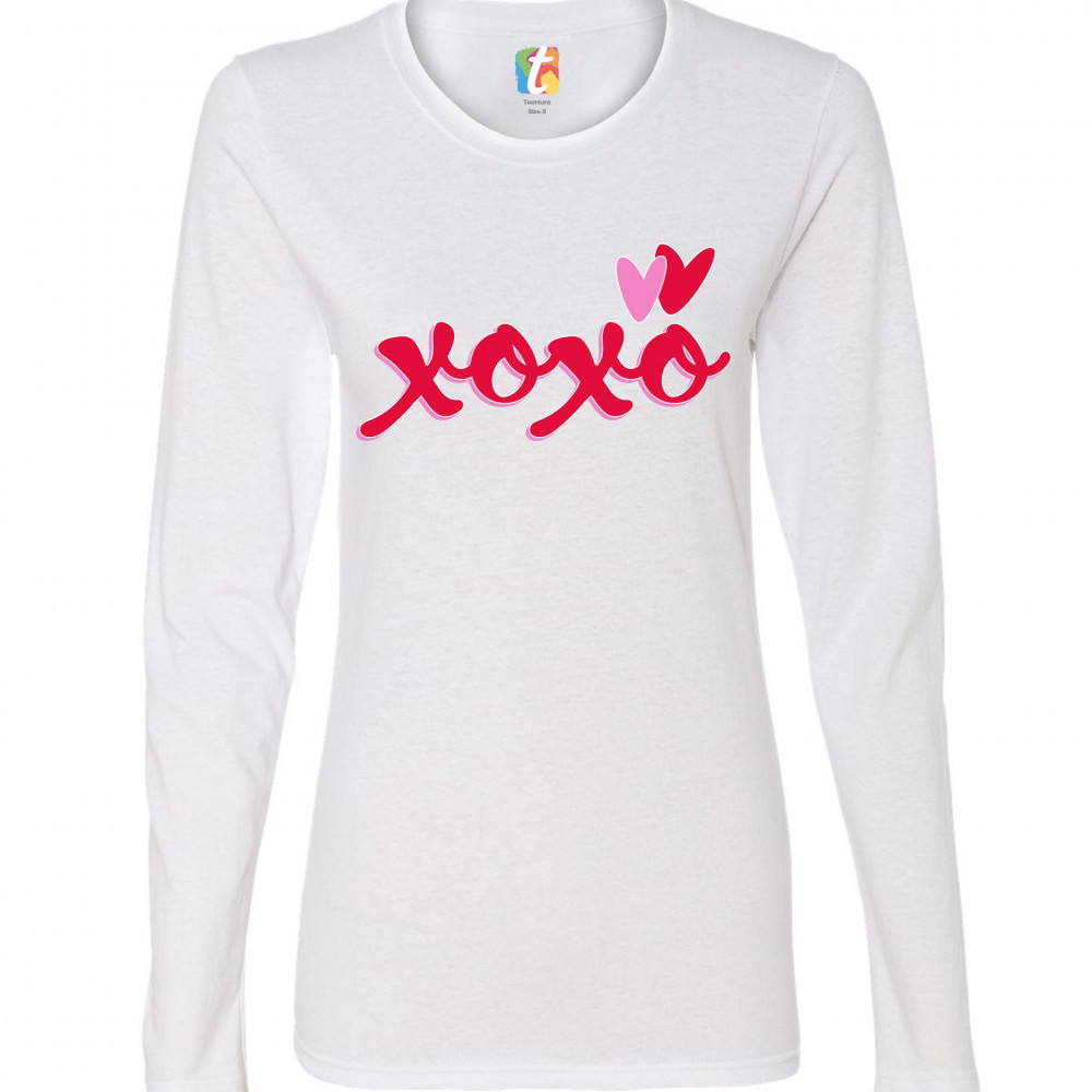 XOXO women's long sleeve t-shirt romance valentine's day hearts passion love white