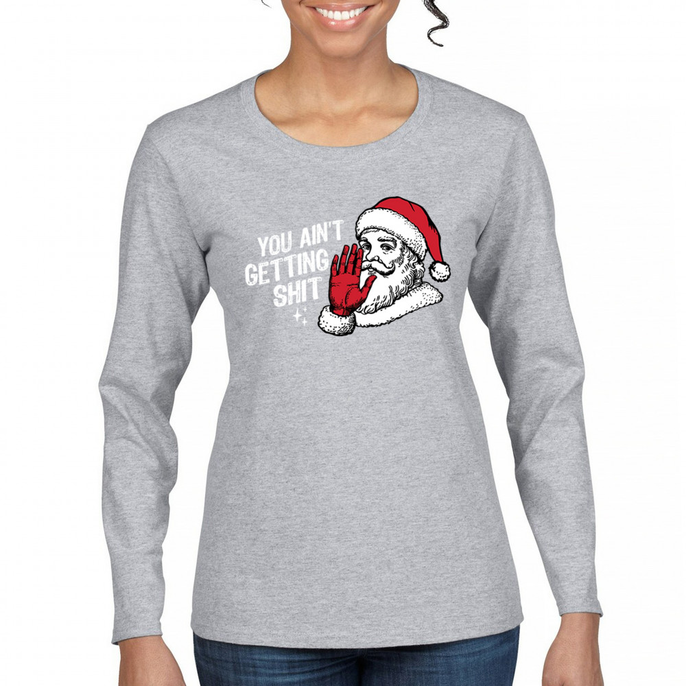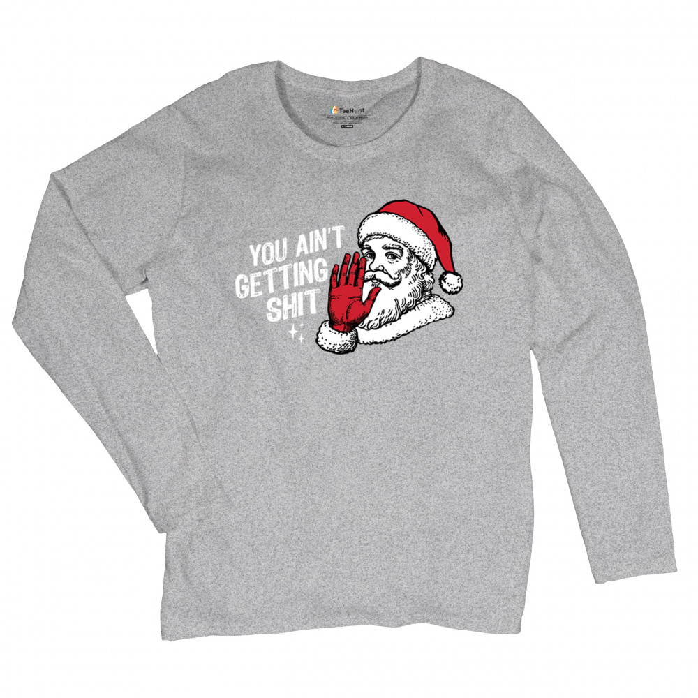 Funny Santa Christmas design with sarcastic Grumpy humor, Merry Xmas parody, Let It Snow style, Jingle Bells laughs, and Christmas tree vibes.