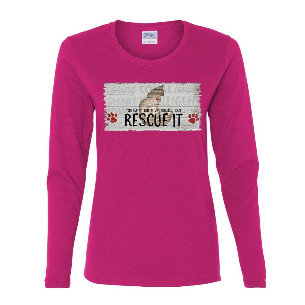 YOU CAN'T BUY LOVE but you can rescue it women's long sleeve tee pet cat kitten hot pink