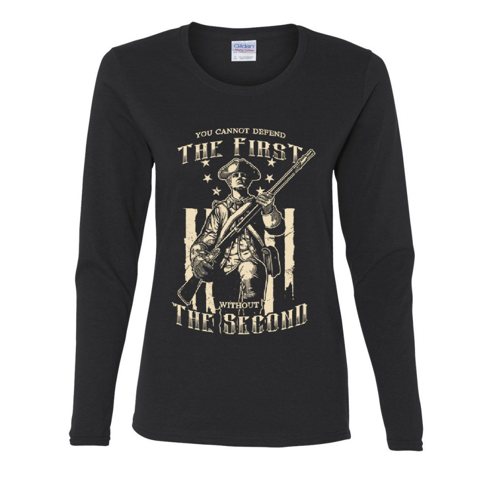 YOU CANNOT DEFEND THE FIRST WITHOUT THE SECOND you can't defend the first without the second women's long sleeve tee militia 2a black