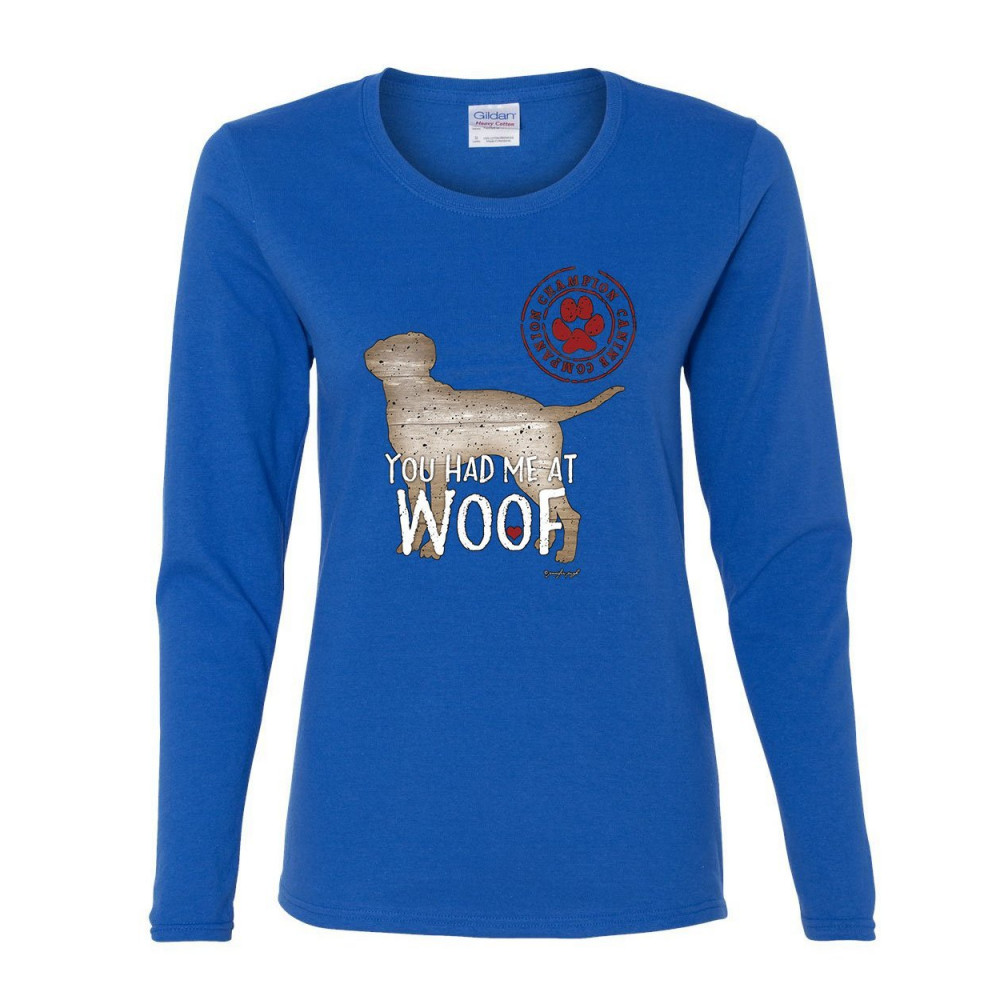 YOU HAD ME AT WOOF women's long sleeve tee pet friend dogs doggie puppy paw bark royal blue