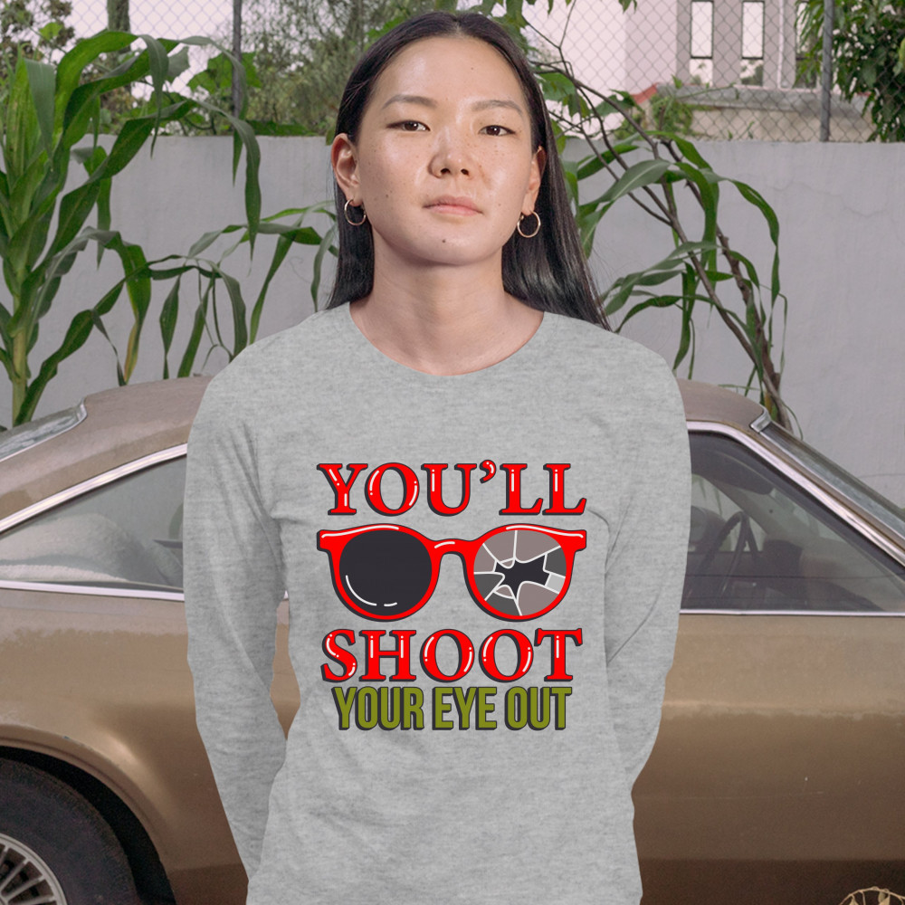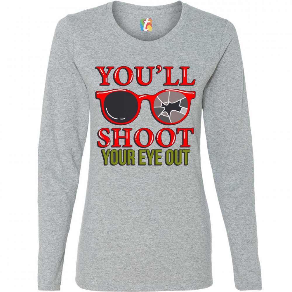 YOU'LL SHOOT YOUR EYE OUT women's long sleeve t-shirt funny christmas saying gray