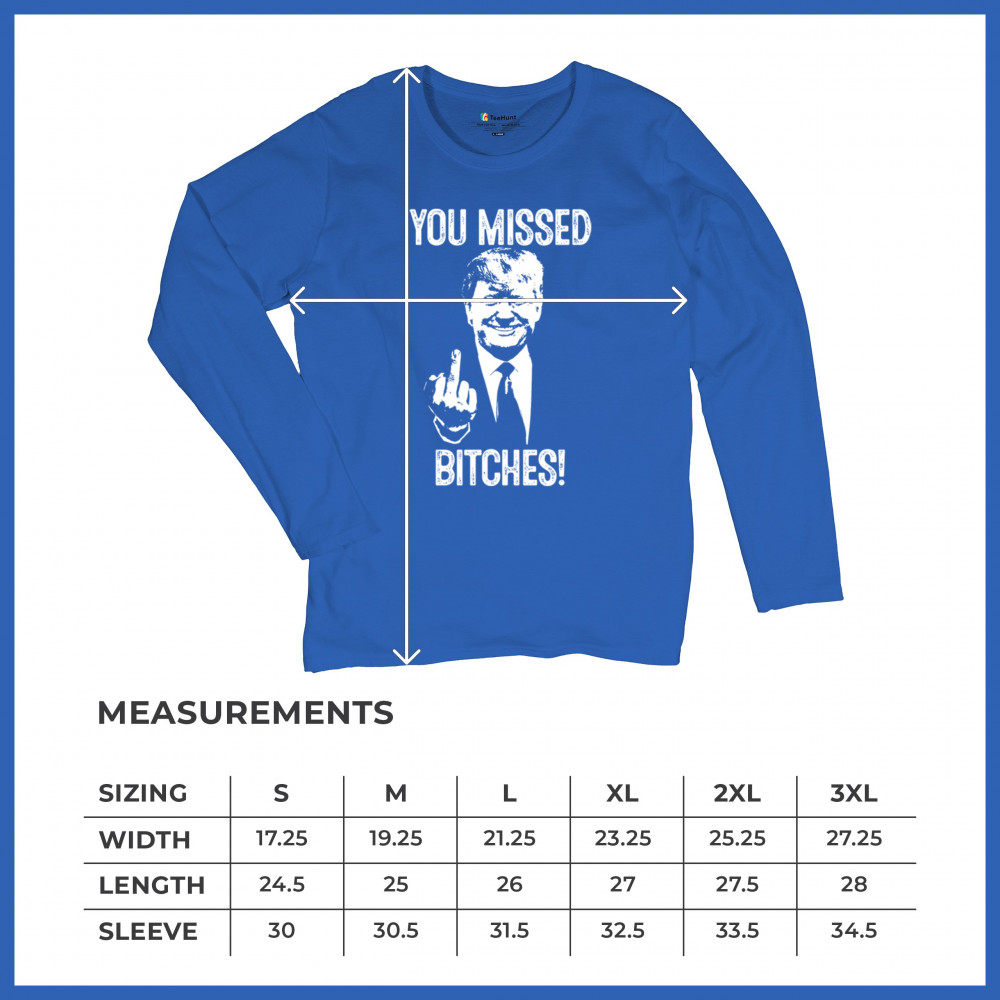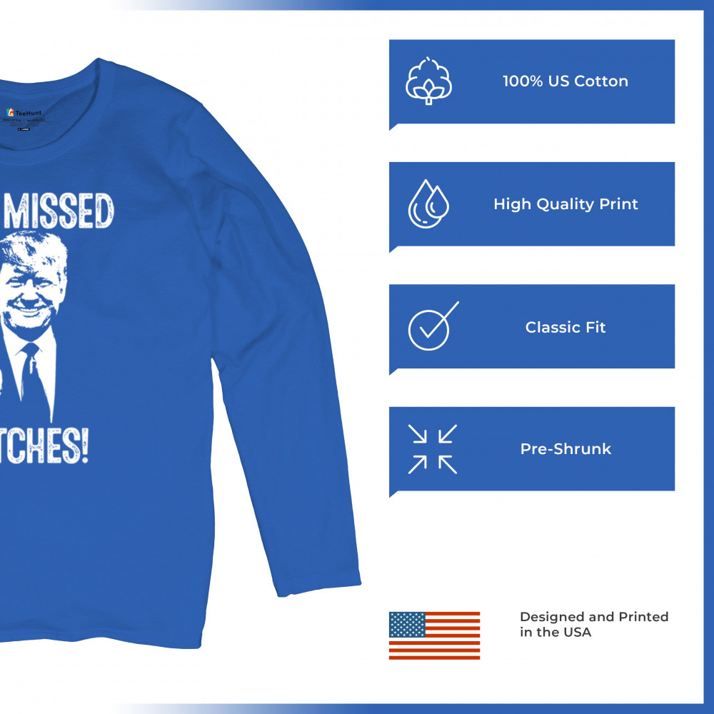 Commemorate Trump's resilience and determination with our bold "You Missed Bitches!" design. Show your support and patriotism.