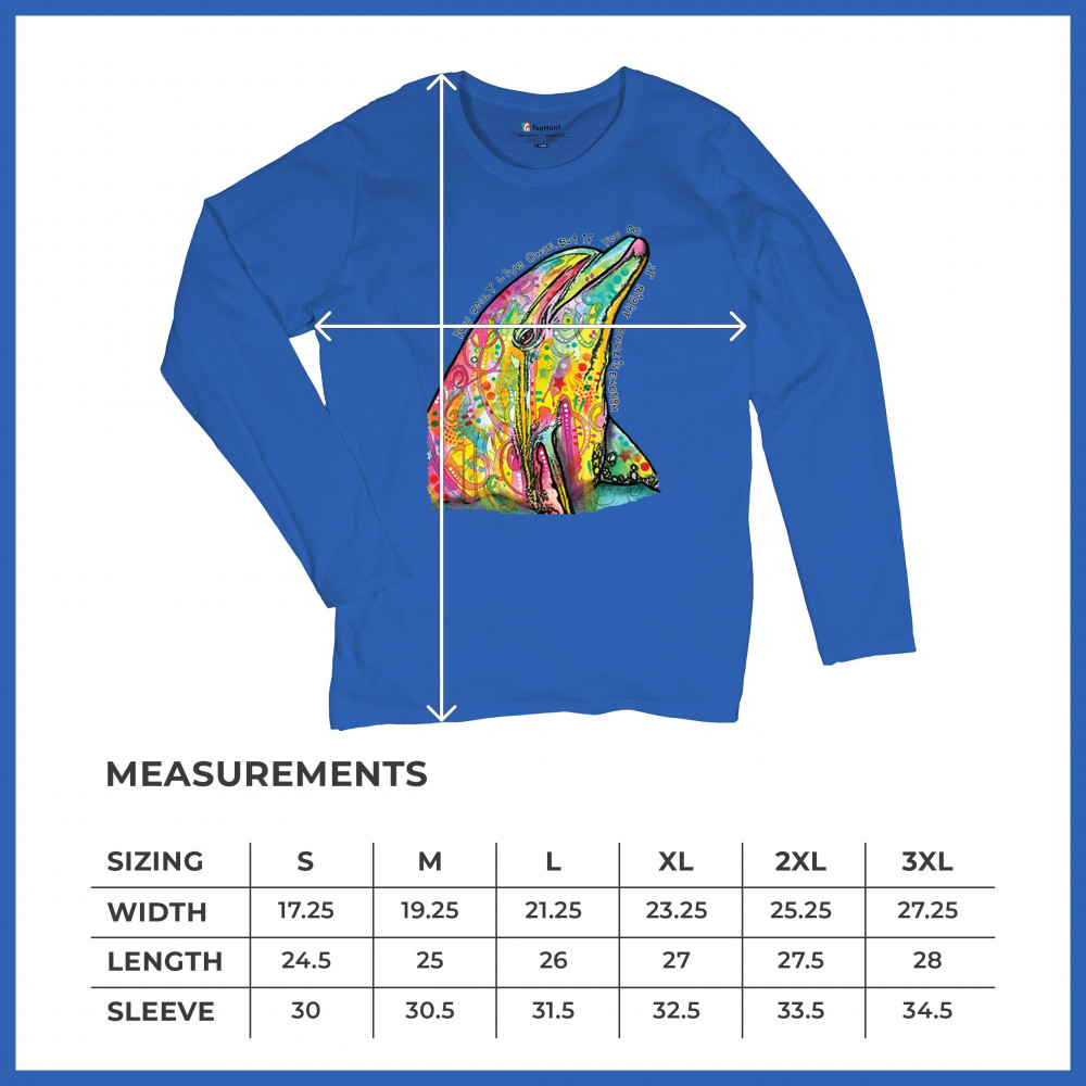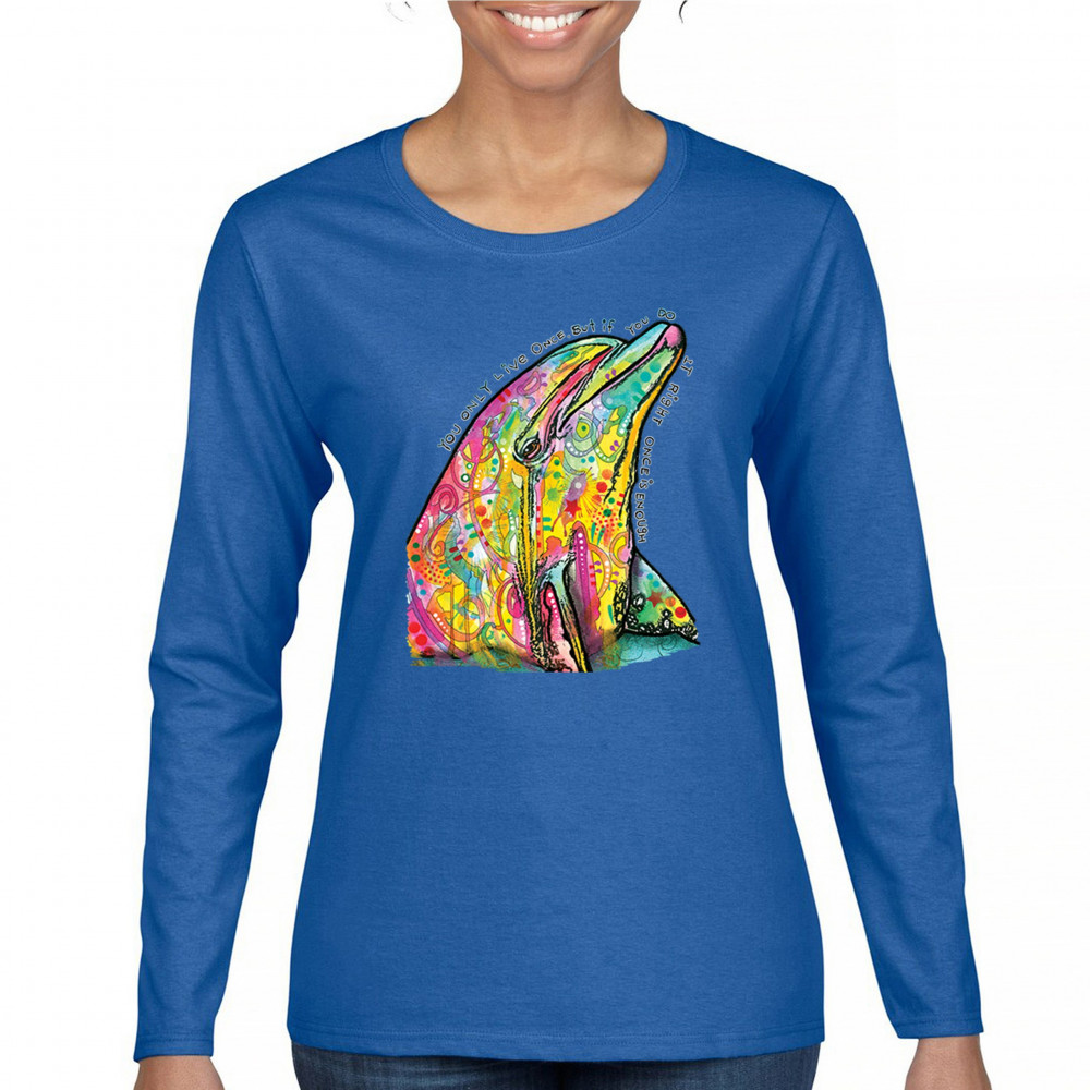 YOU ONLY LIVE ONCE women's long sleeve t-shirt cute neon dolphin dean russo royal blue