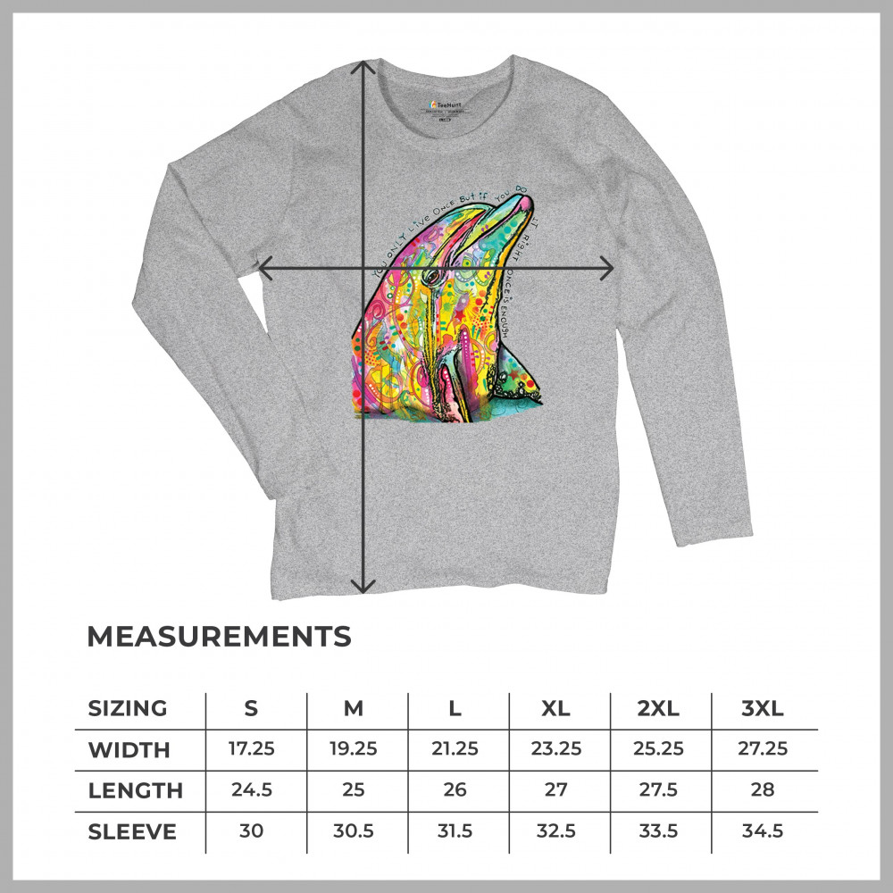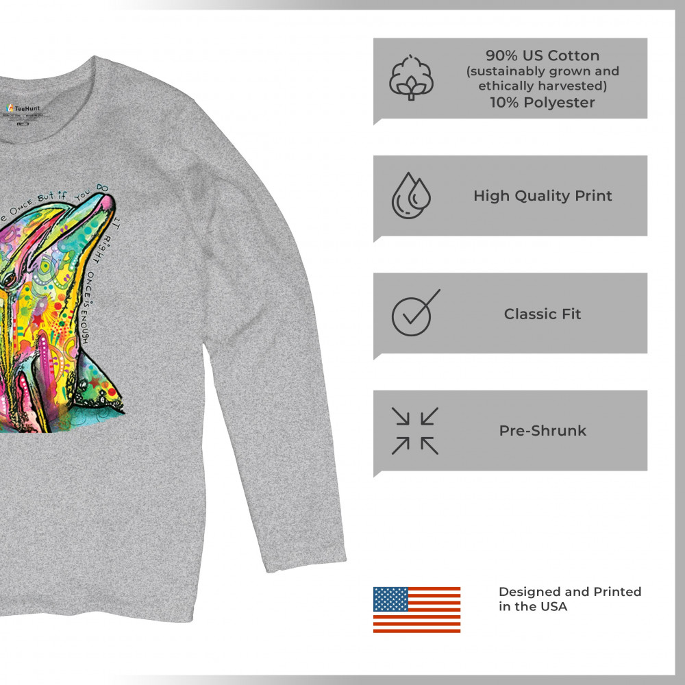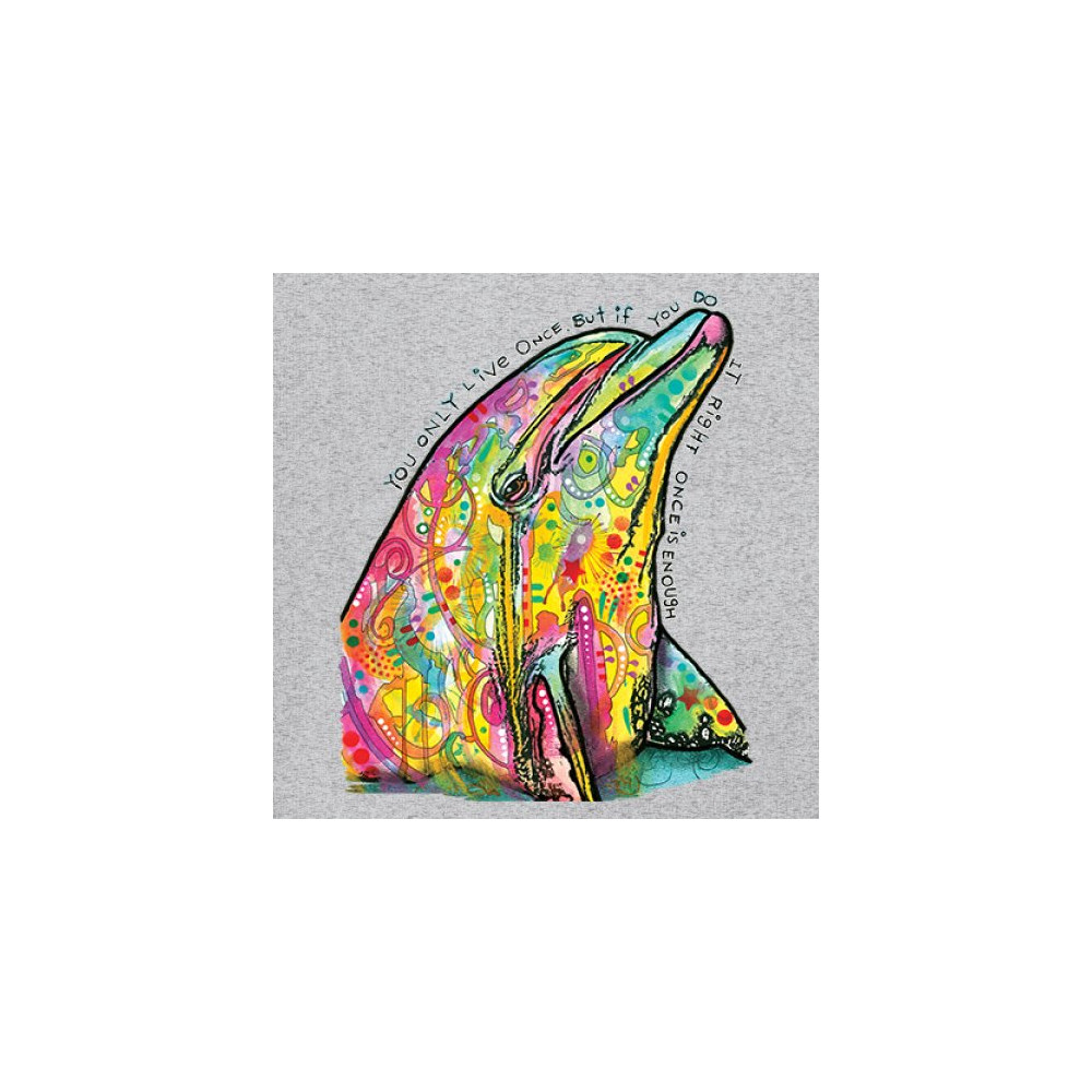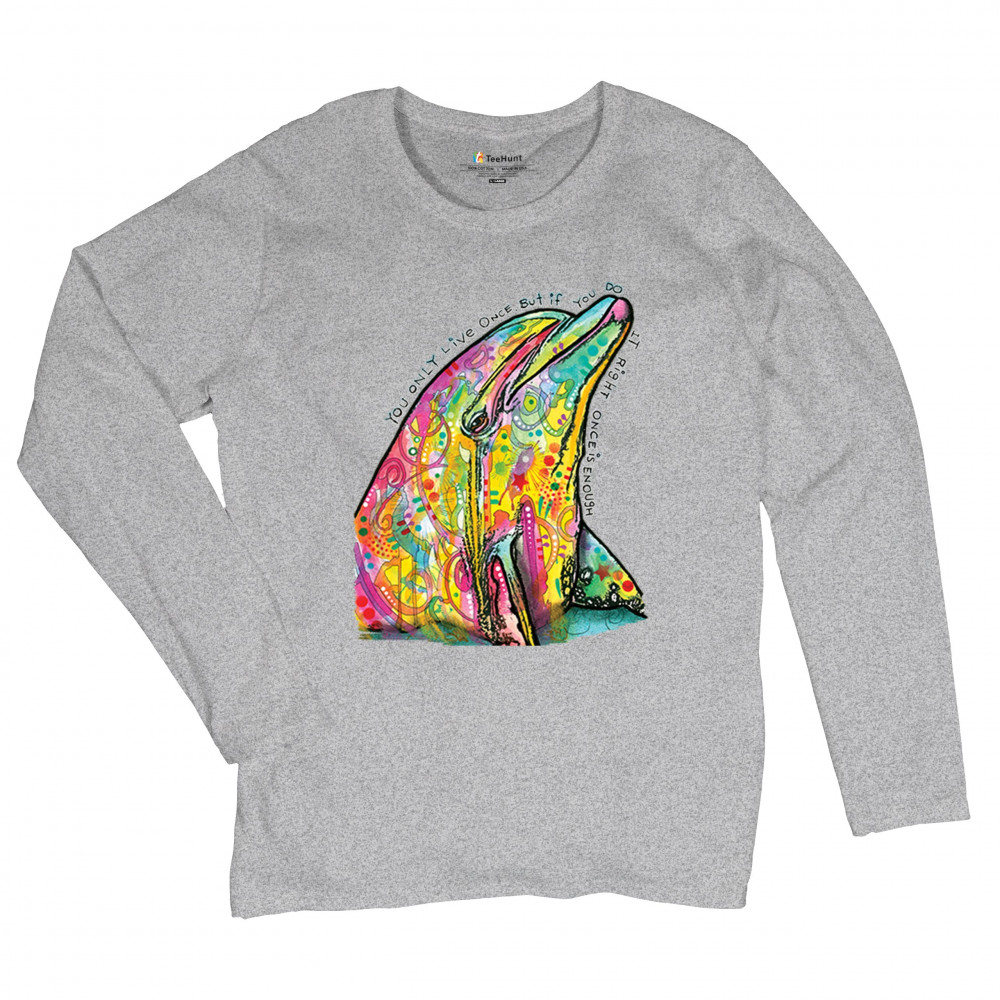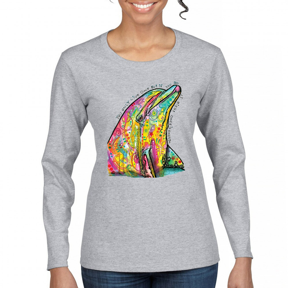 YOU ONLY LIVE ONCE women's long sleeve t-shirt cute neon dolphin dean russo gray
