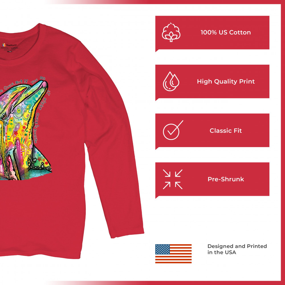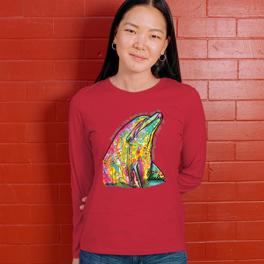 YOU ONLY LIVE ONCE women's long sleeve t-shirt cute neon dolphin dean russo red