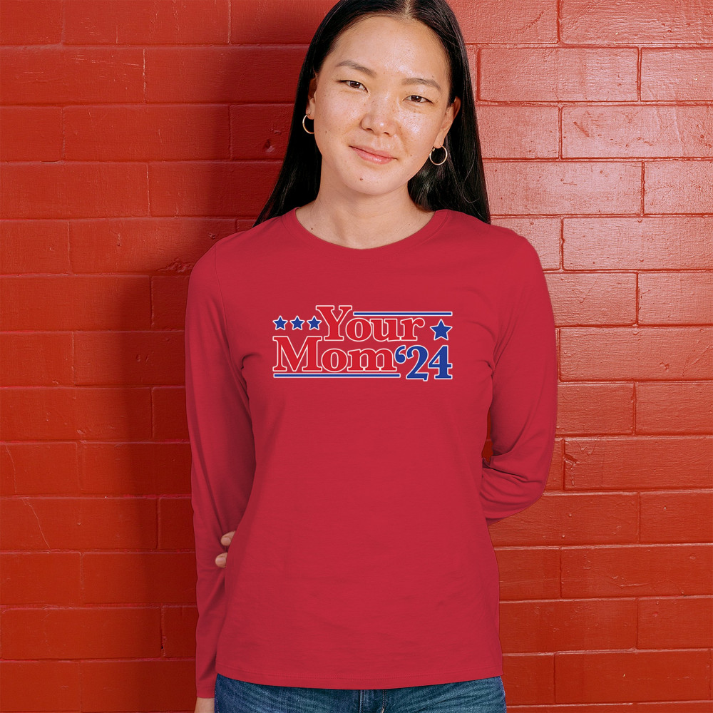Show off your humor and style with the "Your Mom '24" design. Perfect for the 2024 election season, this design combines quality, comfort, and a playful political twist.