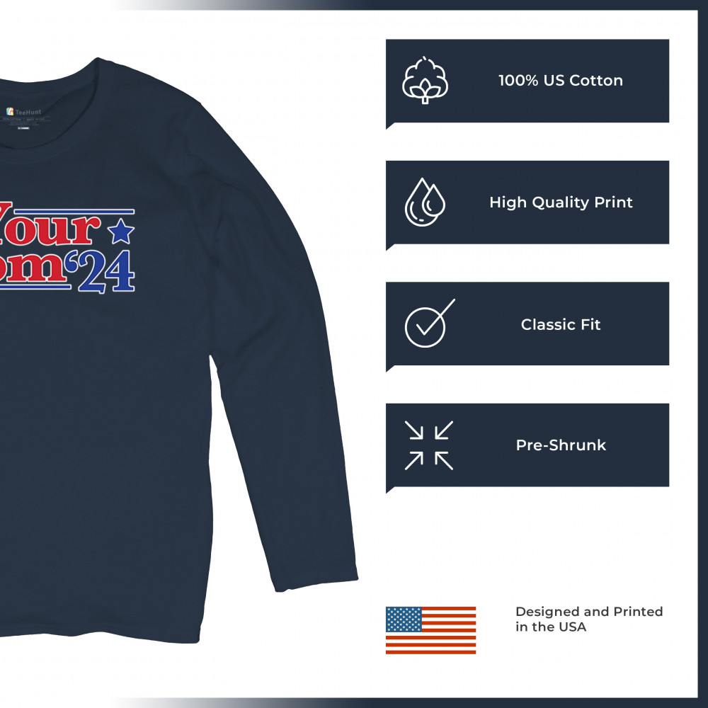 Show off your humor and style with the "Your Mom '24" design. Perfect for the 2024 election season, this design combines quality, comfort, and a playful political twist.