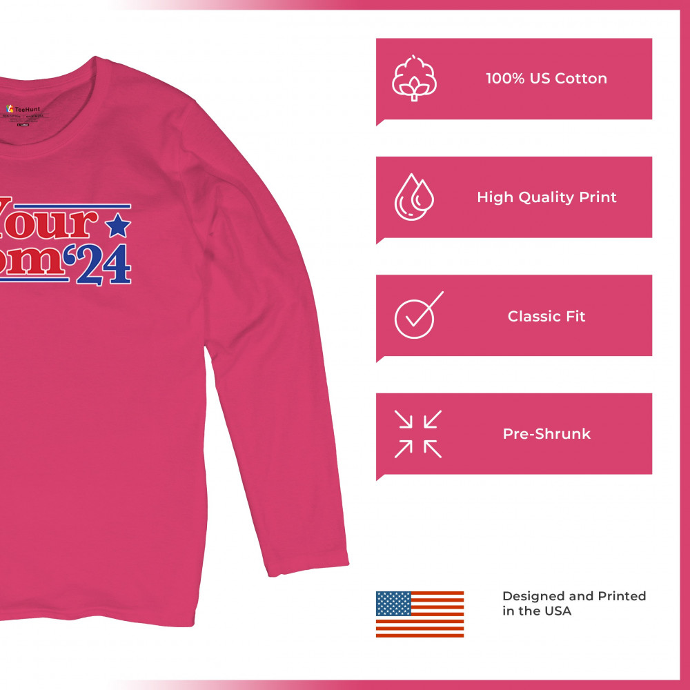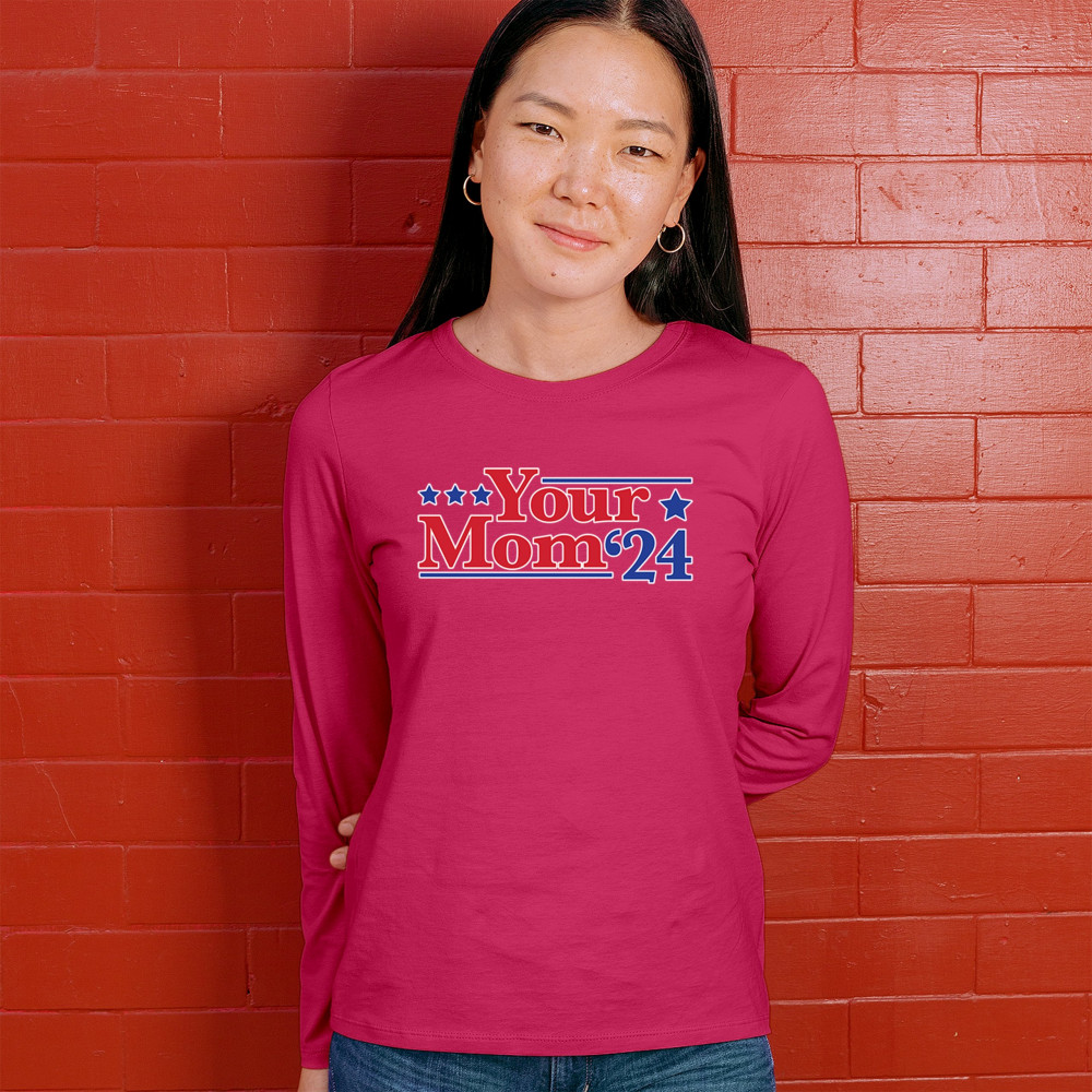 Our "Your Mom '24" design is a playful take on the upcoming election season, perfect for those who love to blend humor with their political views. Made from premium materials, this design offers both comfort and style, making it ideal for any occasion. Whether you're heading to a political event, a casual meetup, or just enjoying a day out, this design is sure to turn heads and spark conversations. Get one for yourself and spread the laughter among friends and family.