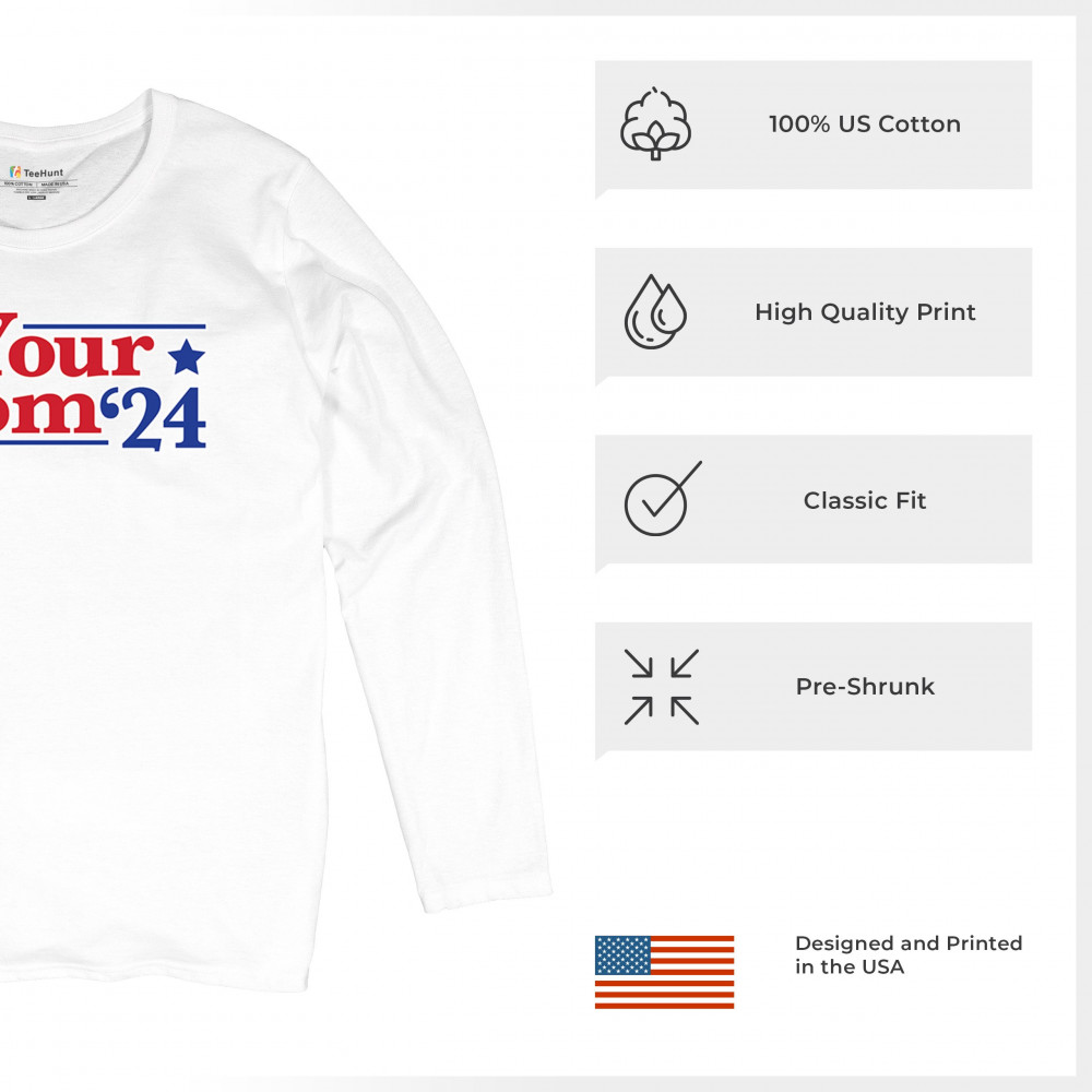 Show off your humor and style with the "Your Mom '24" design. Perfect for the 2024 election season, this design combines quality, comfort, and a playful political twist.