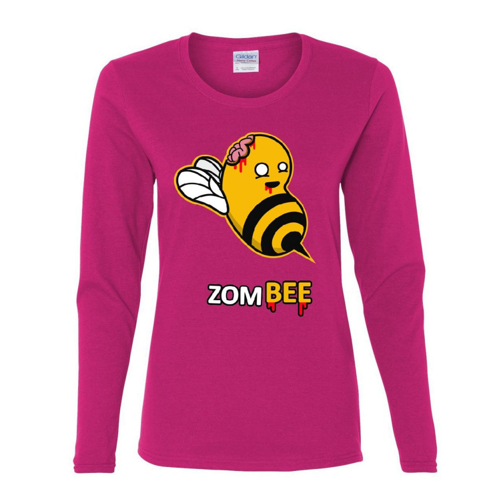 ZOMBEE women's long sleeve tee zombie apocalypse funny dead bee outbreak brains hot pink