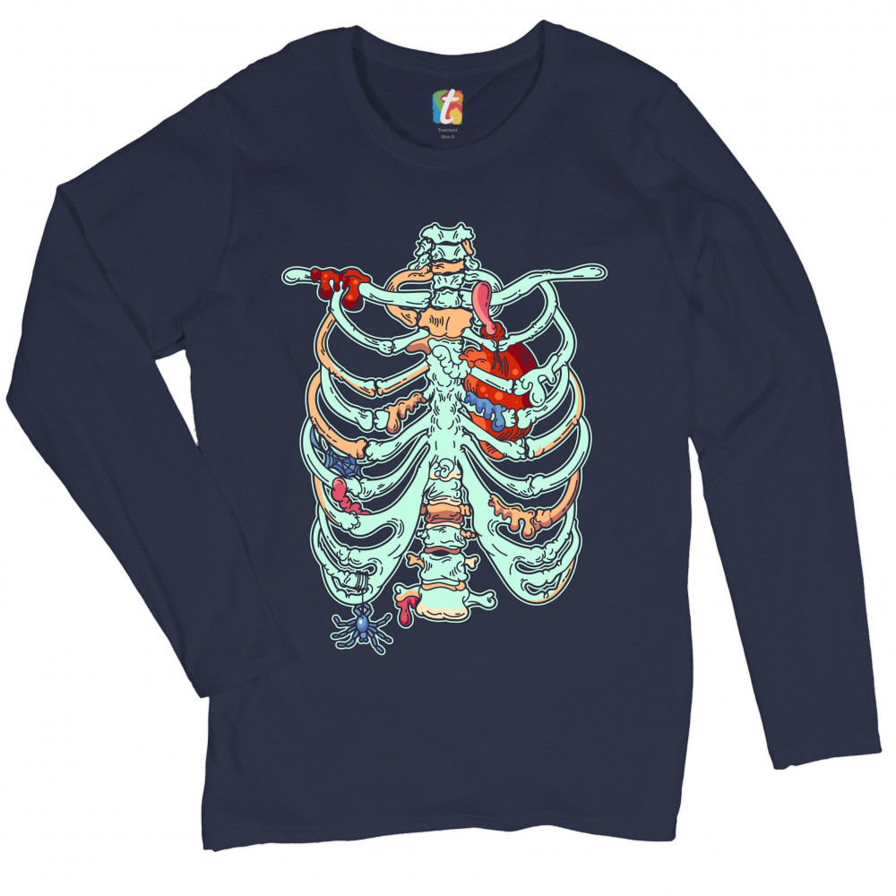 ZOMBIE RIB CAGE women's long sleeve t-shirt all hallows' eve halloween skeleton navy blue