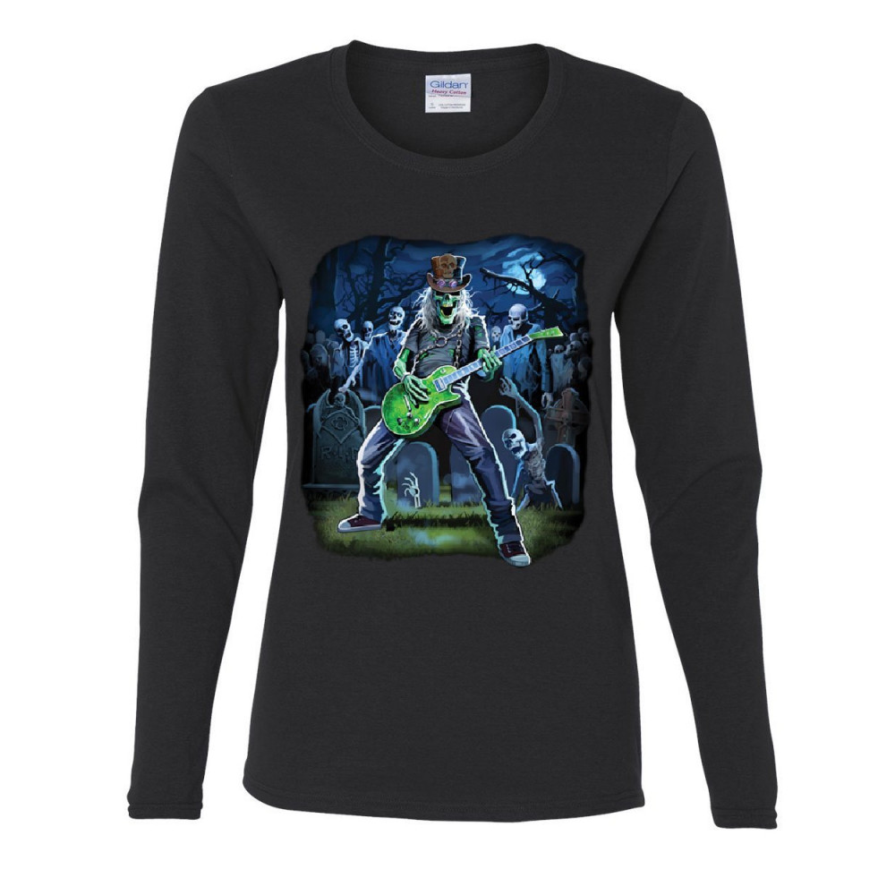 ZOMBIE ROCK women's long sleeve tee heavy death metal music skull hard rock black