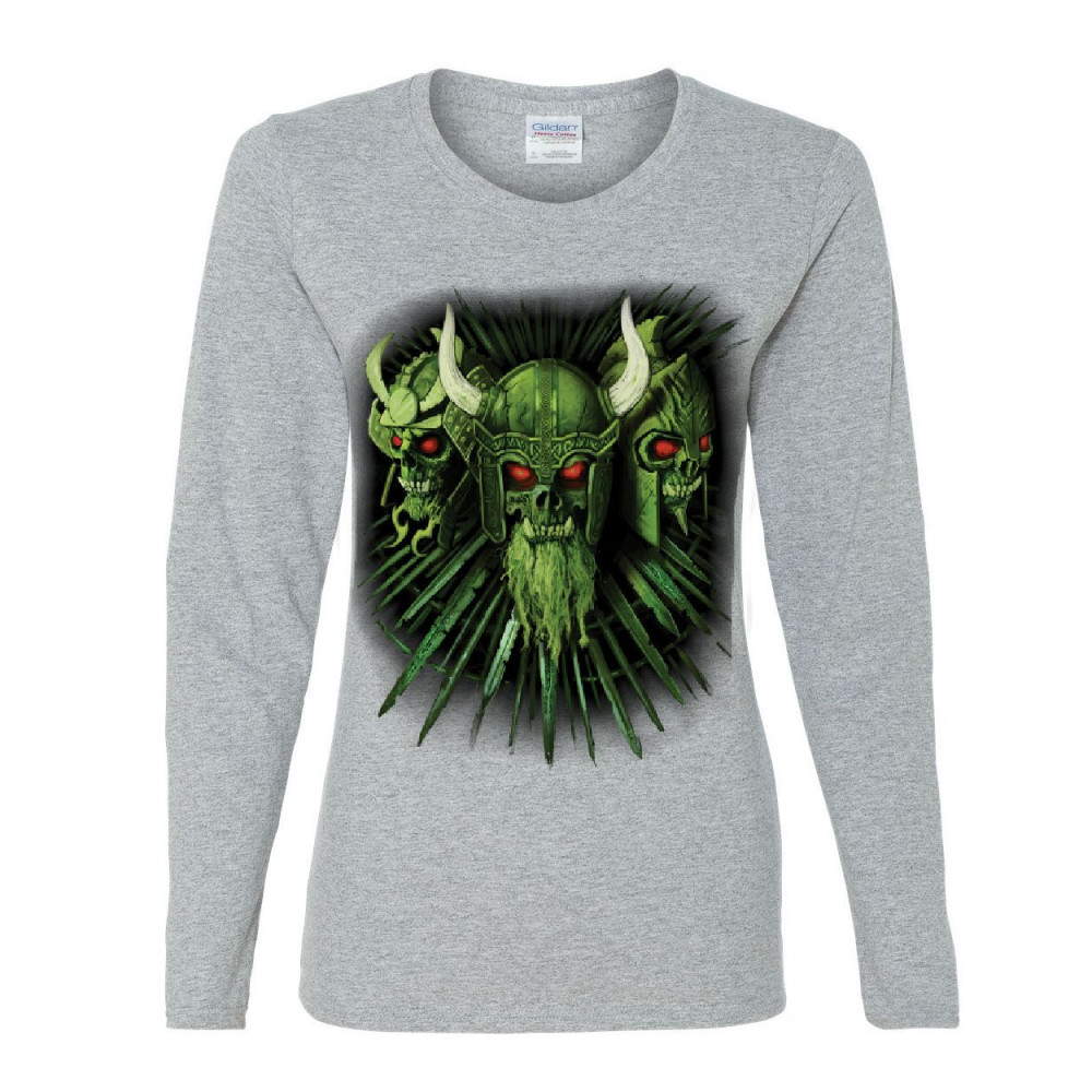 ZOMBIE WARRIORS' SKULLS zombie warrior skulls women's long sleeve tee viking samurai gladiator undead gray