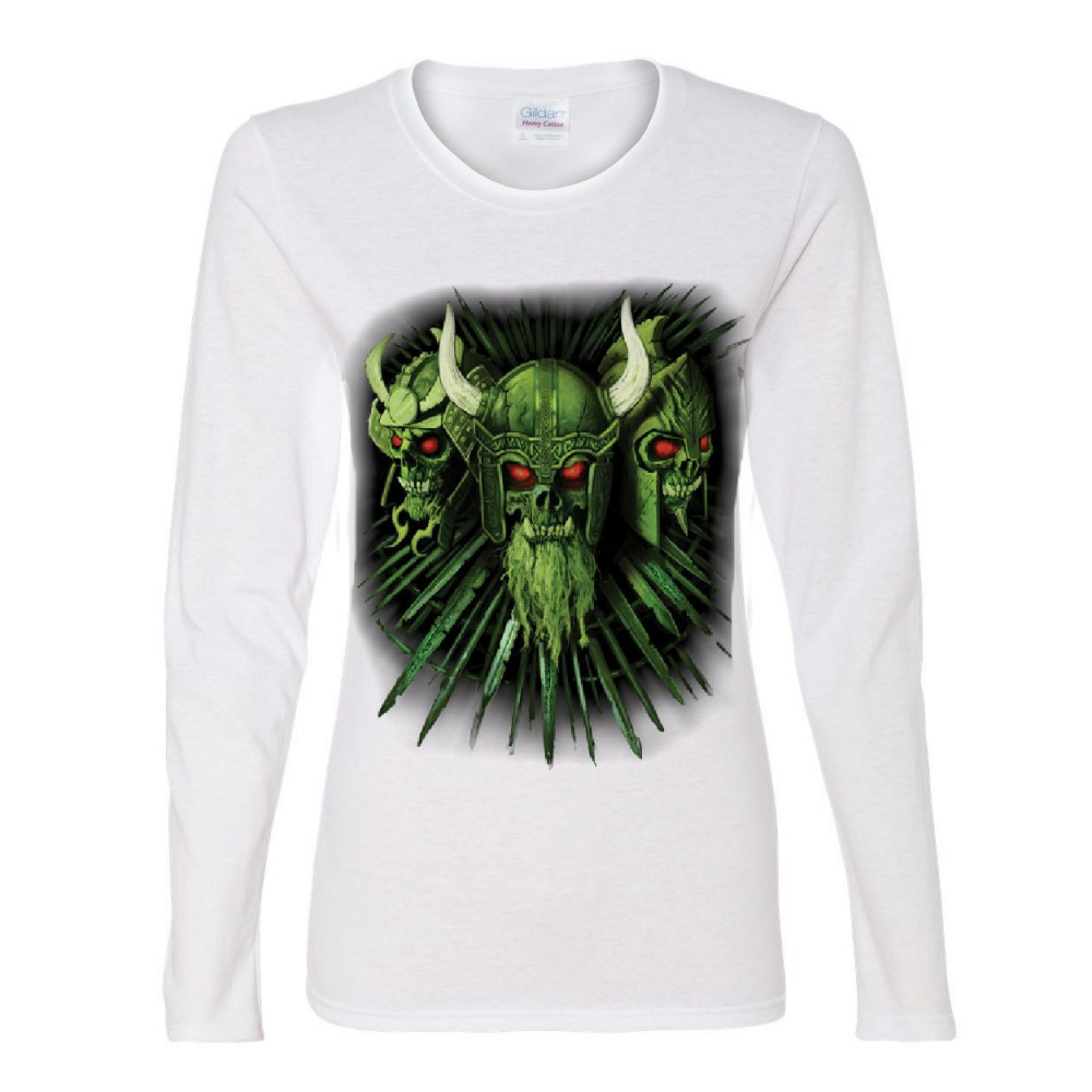 ZOMBIE WARRIORS' SKULLS zombie warrior skulls women's long sleeve tee viking samurai gladiator undead white