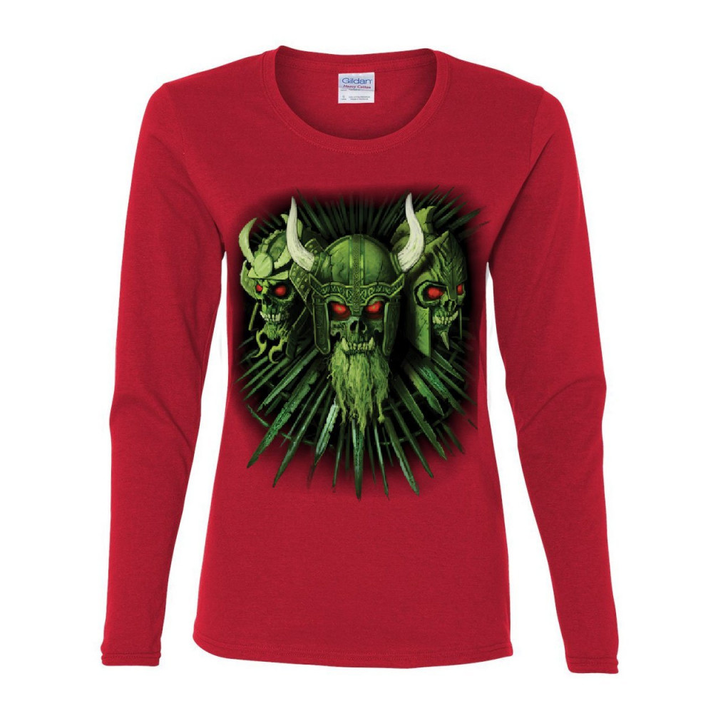 ZOMBIE WARRIORS' SKULLS zombie warrior skulls women's long sleeve tee viking samurai gladiator undead red