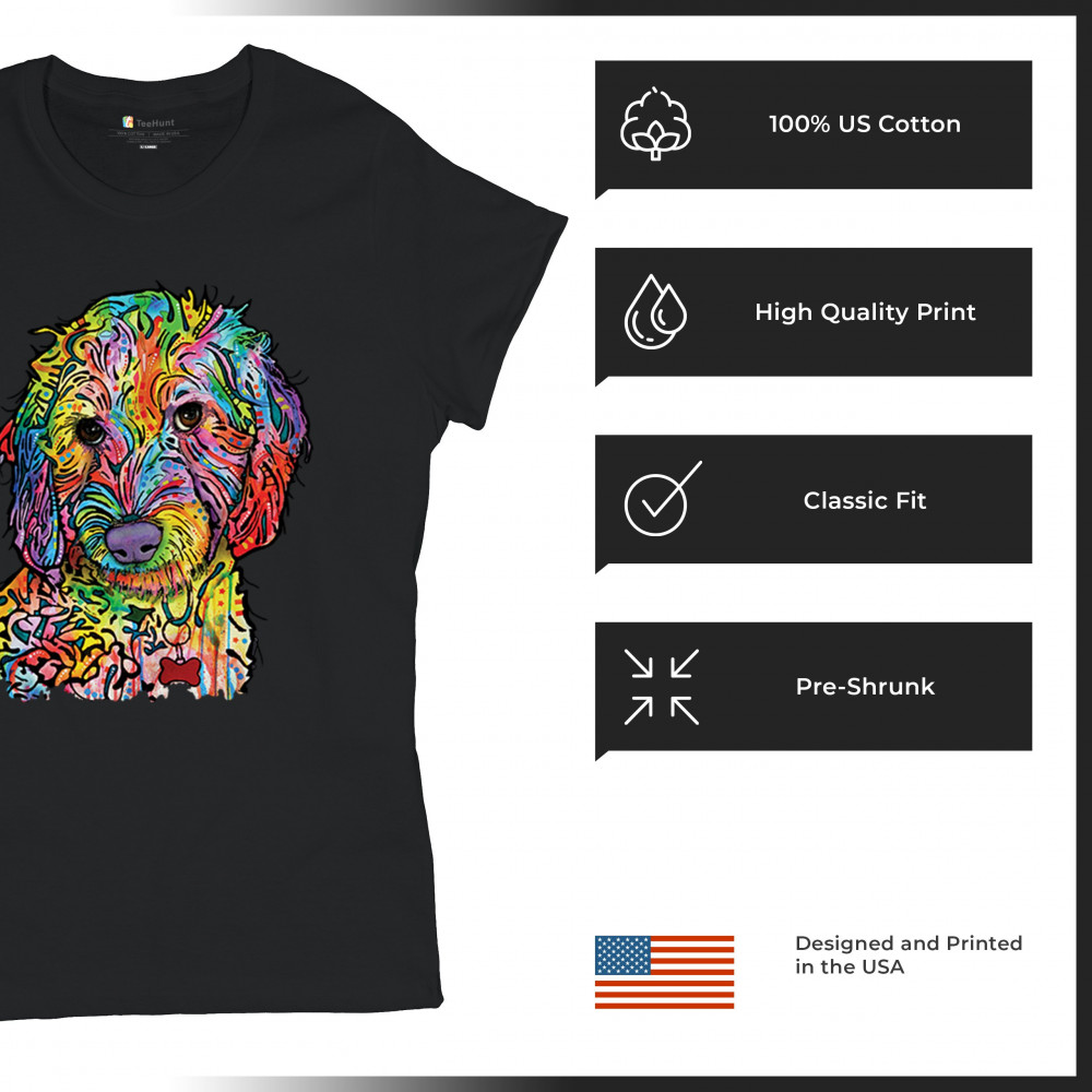 DEAN RUSSO SWEET POODLE t-shirt dog pattern puppy adopt pet women's tee black