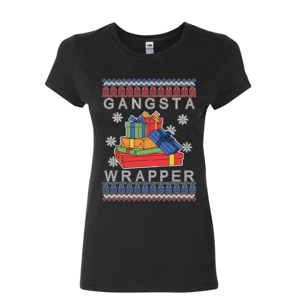 GANGSTA WRAPPER ugly sweater women's t-shirt merry jolly christmas xmas shirt black