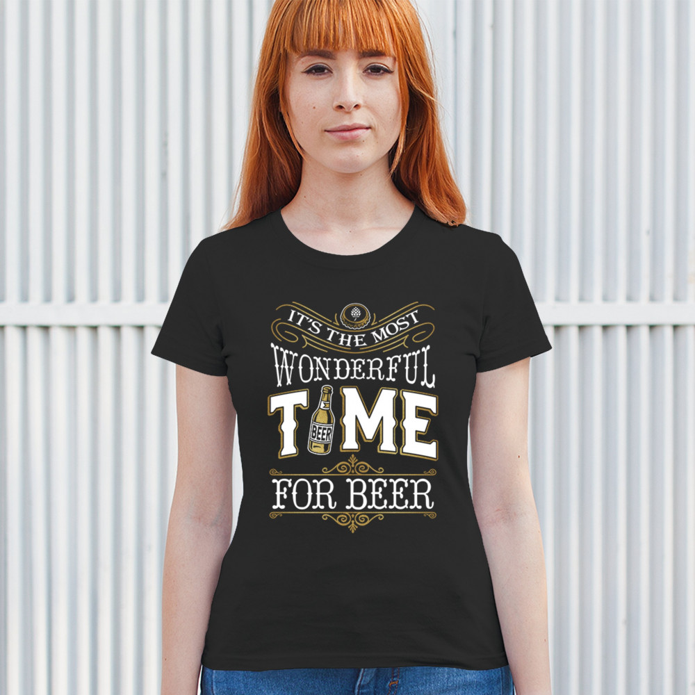Bring some holiday cheer to your wardrobe with our "It's The Most Wonderful Time for Beer" design. Featuring a festive beer bottle and playful text, this design is perfect for adding humor to holiday gatherings, beer festivals, or any casual outing. Ideal for beer lovers and brew enthusiasts, it makes a fantastic gift for those who appreciate beer-themed fun. Embrace the season and your love for beer with this delightful and humorous design!