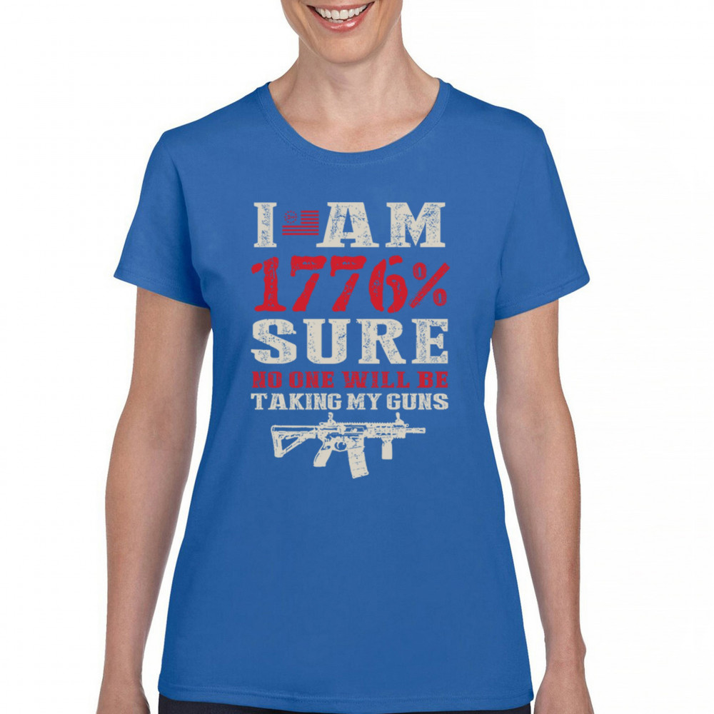 Bold 1776% pro-gun patriotic shirt design with AR rifle and red, white, and blue pride. Great for 2A supporters and freedom lovers.